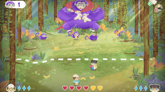 When the kids' flying machine crashes in an unknown location, you and your buddy must cooperate to find all the missing parts of the Adventure Machine. In your quest you might find yourselves surrounded by mocking monkeys, tricking a vengeful robot or even dodging giants' legs.
