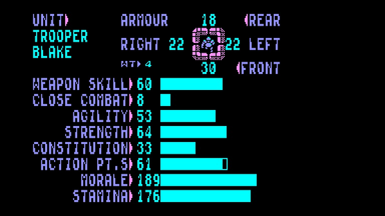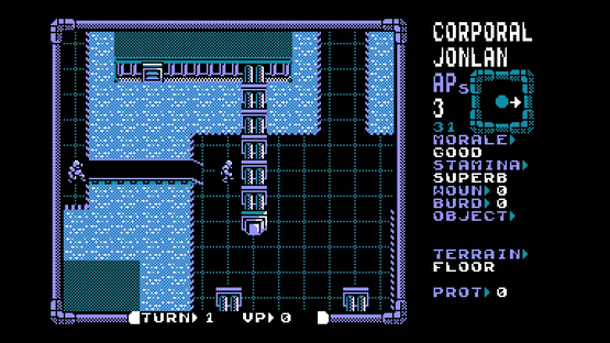 Laser Squad is a turn-based tactics war game where the player completes objectives such as rescue or retrieval operations, or simply eliminating all of the enemy by taking advantage of cover, squad level military tactics, and careful use of weaponry. The squad's team members are maneuvering around a map one at a time, taking actions such as move, turn, shoot, pick up and so on that use up the unit's action points. More heavily laden units may tire more easily, and may have to rest to avoid running out of action points more quickly in subsequent turns. Morale also plays a factor; a unit witnessing the deaths of his teammates can panic and run out of the player's control. Including the expansion pack, there are seven scenarios in total, each one with its own difficulty settings and squad allocation Laser Squad originally came with five mission scenarios, with an expansion pack released for the 8-bit versions, containing a further two scenarios. Reaction from gaming magazines was positive, gaining it high review rating and several accolades. The legacy of the game can be seen in other titles like the X-COM series, especially the acclaimed UFO: Enemy Unknown which was also created by Julian Gollop and was initially conceived as a sequel to Laser Squad