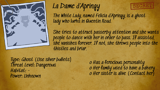 Need MORE stress in your life? Your goal is to find the White Lady that terrorizes the surroundings of Bayeux, France. Meet the creepy townsfolk, and attempt to solve the occultic mystery. Includes family feud, incompetent officers, and poisonous blueberries. Also contains playable Coopers.