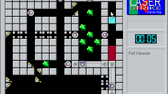 Laserstrike is a single-player, shareware, puzzle game. The object of the game is to fire a laser at a target and hit it twice to complete a level. Lasers can only travel in straight lines and so the player must use lasers and other canons to move blocks and mirrors in order to achieve the task. The full version of the game has twenty two puzzles and seven coaching or tutorial puzzles.