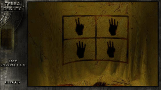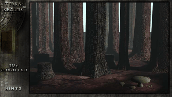 TerraRealms: The Discovery is a 1st person, point-and-click adventure game strongly influenced by games like Myst. You start in a dark forest with towering trees and a path. As you wander in different directions, you come upon a few caves. In one of them is a tray containing triangular-shaped pieces. By exploring further, find the clue needed to solve the puzzle in the tray. When solved, something else happens. And so the gameplay continues.