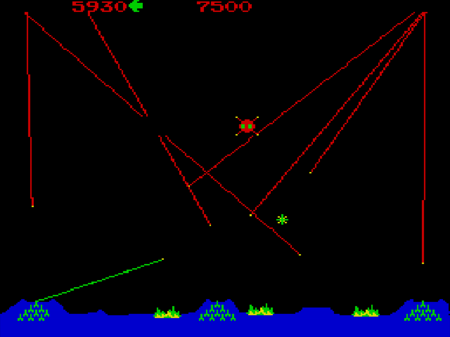 As a regional commander of three anti-missile batteries, the player must defend six cities in their zone from being destroyed. The player's six cities are being attacked by an endless hail of ballistic missiles, some of them even splitting like multiple independently targetable reentry vehicles (MIRVs). New weapons are introduced in later levels: smart bombs that can evade a less than perfectly targeted missile, and bomber planes and satellites that fly across the screen and launch missiles of their own.