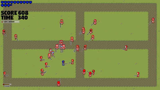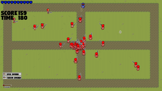 Alfelus is an arcade action game where the blue warrior Alfelus must fight against the infinite army of the enemy Red Kingdom. Alfelus must use a combination of his sword, his wits, and randomly appearing magical artifacts in order to survive as long as he can and try to obtain a high score.
