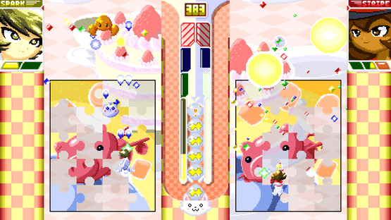 It's time for competitive puzzle and shooting action! Face an opponent in this arcade-style blend of jigsaw building and shooting! Defeat hordes of monsters as they pile on to the screen, and finish your puzzle first to win!
