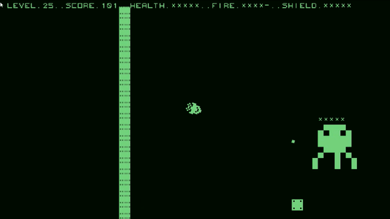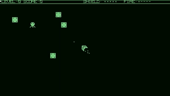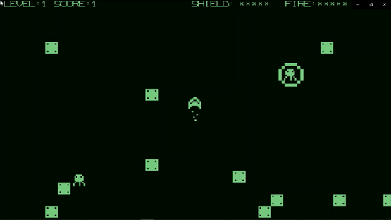 Robot Squids want to destroy the Earth, but Jack Diamond dicovered their plan. He took his spaceship and infiltrated inside their secret base. Drive Jack's ship using rotation and acceleration physics, take you aim and shoot them. It's not as easy as it sounds! This game has only 2 colors dark and light green, like the old monitors!