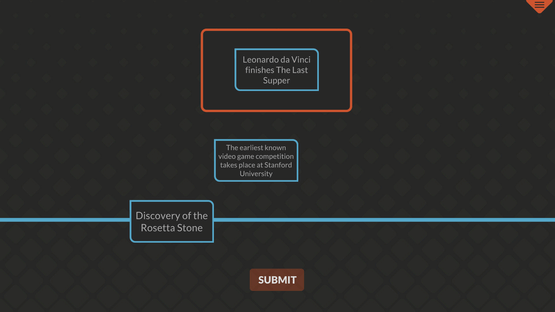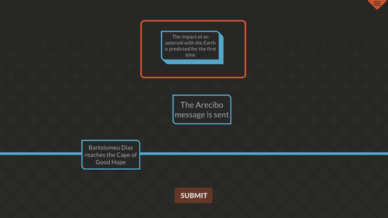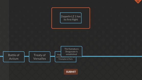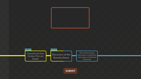 Drag and drop the historic events cards onto the timeline, arranging them from earliest to latest. Put all the events in correct chronological order to beat the level and unlock the next challenge.