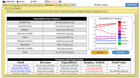 Explore a dynamic world of politics in this turn-based, political simulator. Create a character, run for political office, write legislation, balance budgets, and more as you move up the political hierarchy.