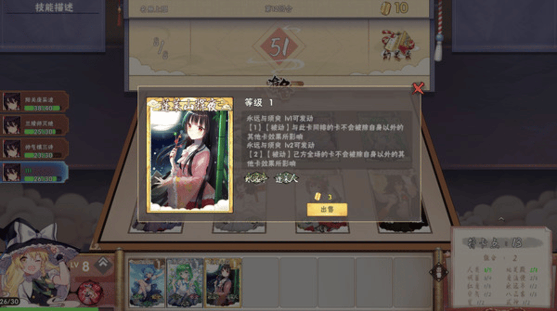 Touhou Hakanai Cards is a strategy game combining TCG. The card characters are all from the Oriental project. You can use these different styles and distinctive characters to match a variety of lineup combinations. Enjoy well-designed balance and a fun-filled sense of operation, carefully plan the resources in the game, and use beautifully illustrated character cards to play against! It can also support 2-4 people on the PC platform for online battles.