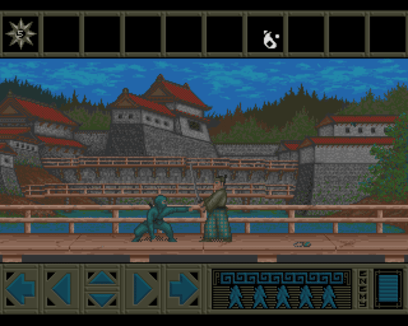 You are a noble ninja, who has to prove the honour of shogun Yuichiro by recovering a stolen sword from the evil Toranaga. Walking from a village to a castle, you fight enemies and avoid traps using your skills in martial arts and Japanese weapons, collecting useful items and uncovering the twisty plot of the story.