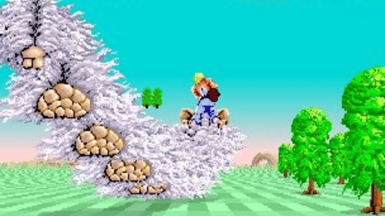Run… fly… dodge those obstacles, but return fire on wave after wave of attacking aliens. Armed with a really big gun, you have to defend yourself against the alien hordes using your wits to navigate around the screen. But watch out for those end of level bosses! Originating in the arcades, Space Harrier is a third-person rail shooter with pseudo-3D graphics, set in the same world as Fantasy Zone. The lone titular hero fights aliens with a fireball-launching cannon, which can also be used to transform the hero into a flying rocket. The protagonist is constantly in motion, but the speed of his movement can be regulated by the player.