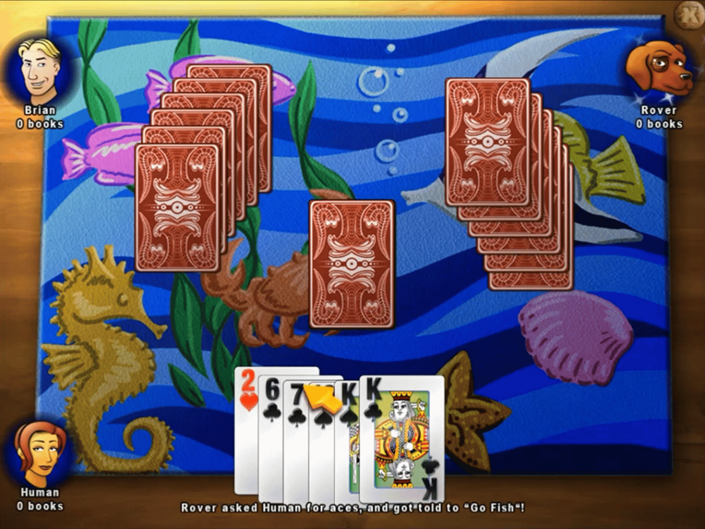 Try your luck at Go Fish. The object is to make books of four cards sharing the same value. At the end of the game, the player who has the most books wins.