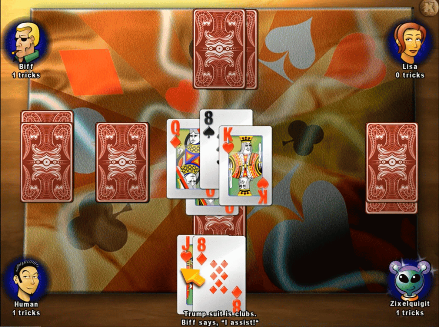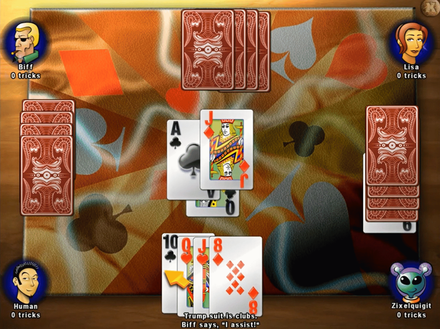 Try your hand at this old-time favorite card game. Trick-taking makes for an action-packed round of cards. Go for the perfect loner hand for spades trump.