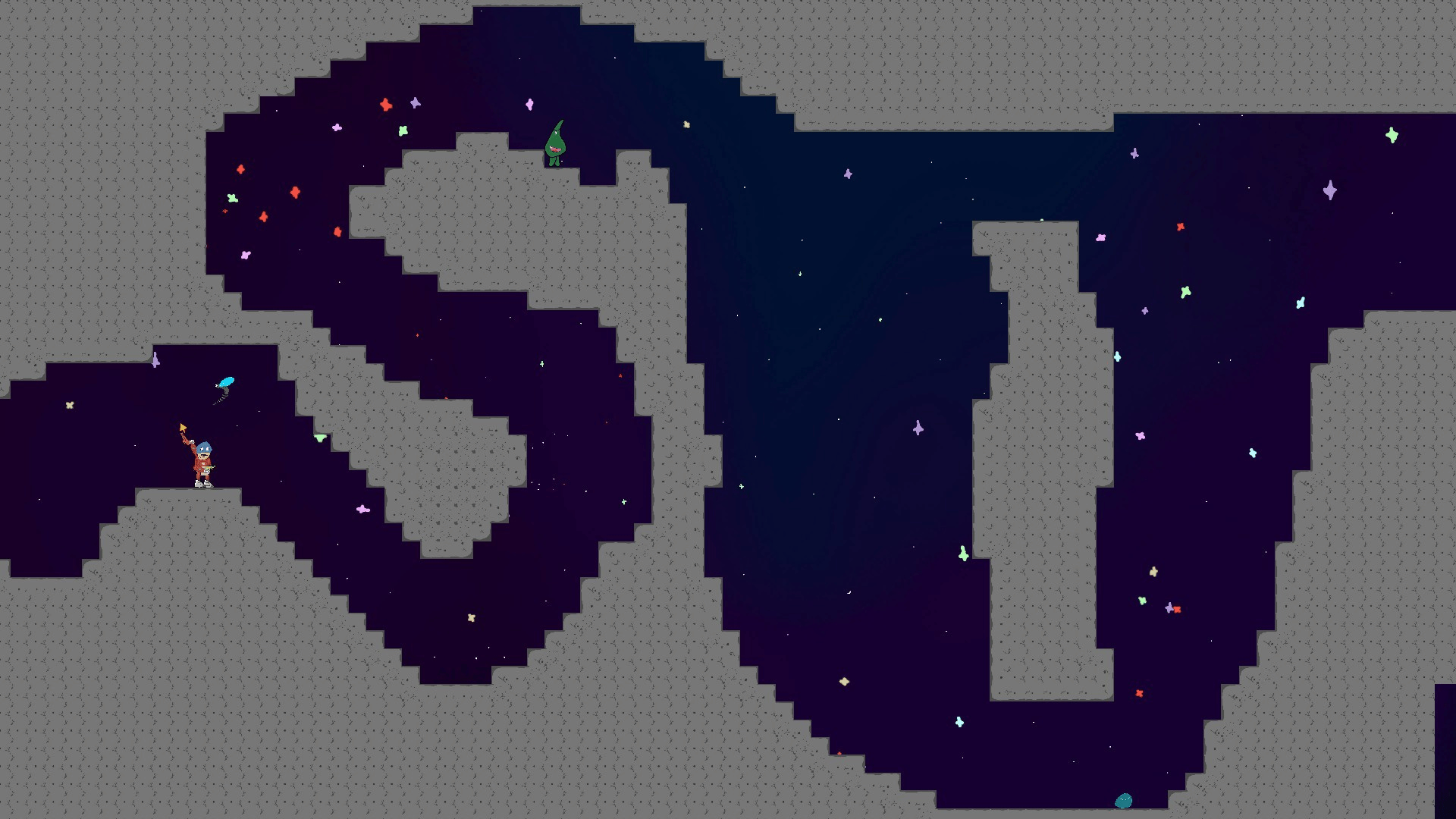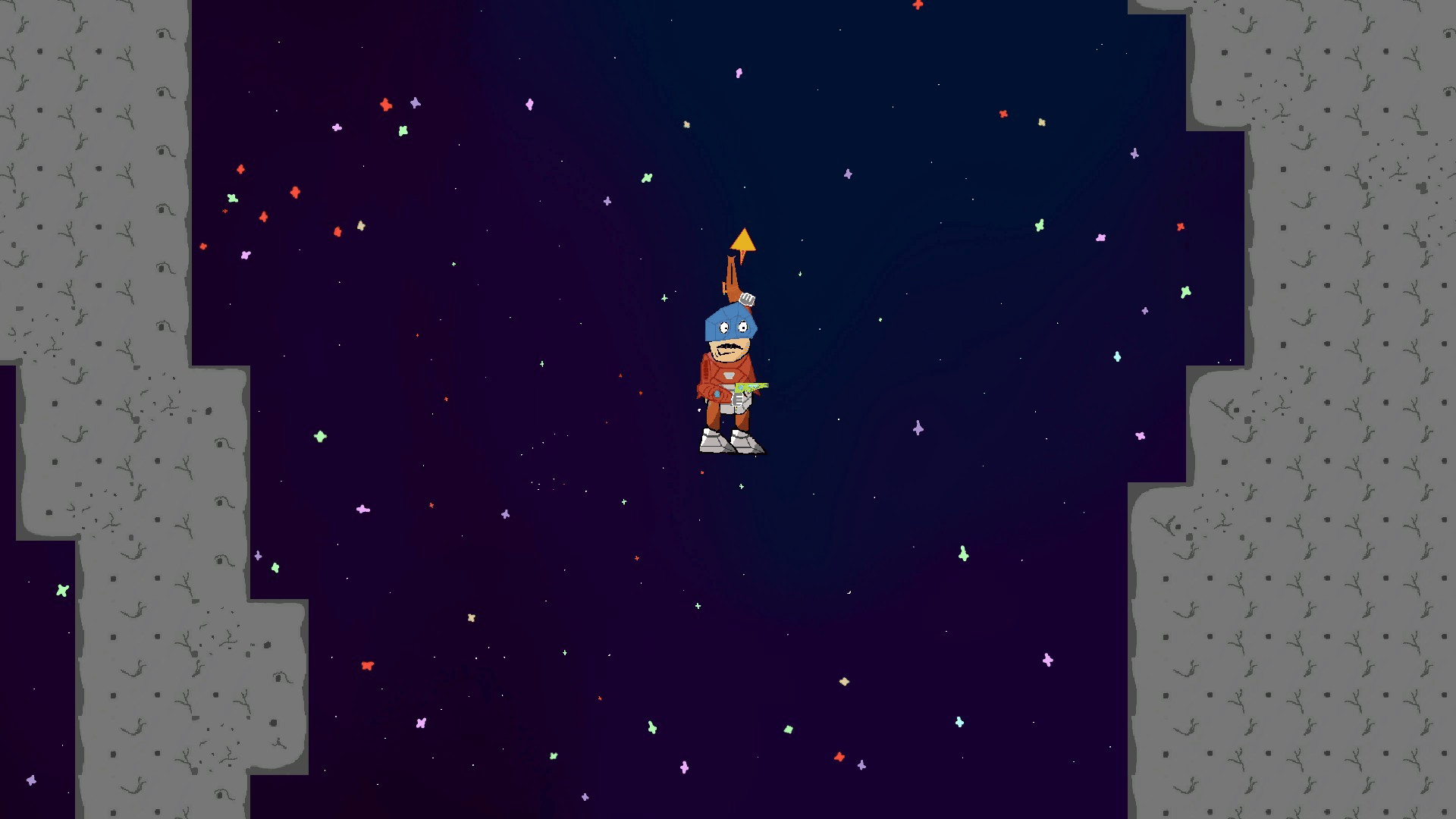 You crash-landed on a giant asteroid, broke both your legs, but thankfully always have a trusty grappling hook, and a laser cannon with you. The asteroid you landed on, however, is not a safe place. Danger is just around the corner and the entire comet seems to be about to collapse.