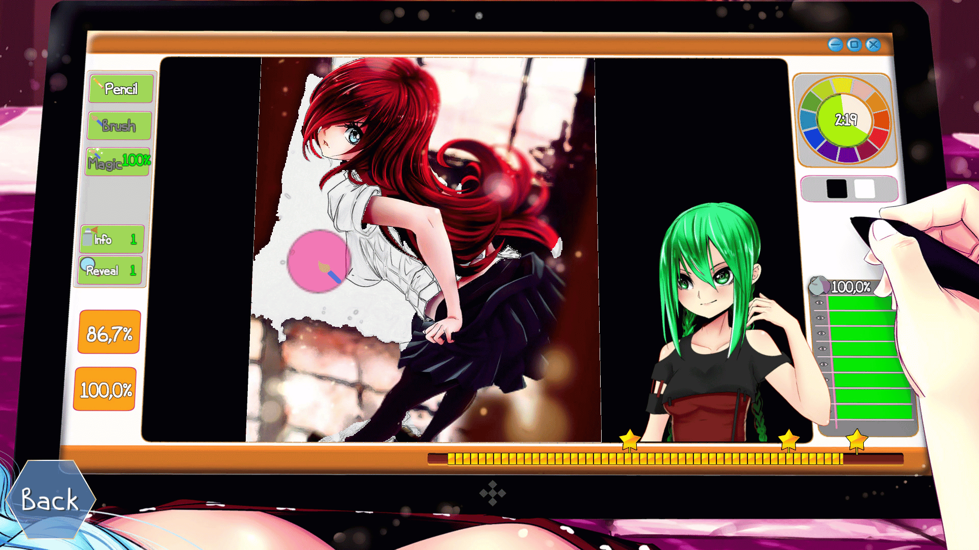 Anime Artist 2 is a unique sim experience for PC: A Puzzle game with light RPG elements. Help our lovely Danya becoming an Anime Artist. Draw, Color, Collect art while making money and unlocking various dresses and hair styles for her... but most importantly... her heart!