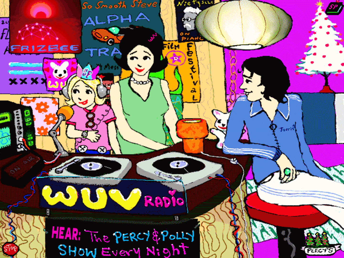 Smarty is an interactive storybook designed for girls aged 7-12. However, like designer Theresa Duncan's earlier game, Chop Suey, it can be enjoyed by almost anyone. It follows a little girl named Mimi, who is the smartest kid on her block. There are many different activities to play. You can also interact with many of the game's background items, which provide funny animations or fantastical scenes.