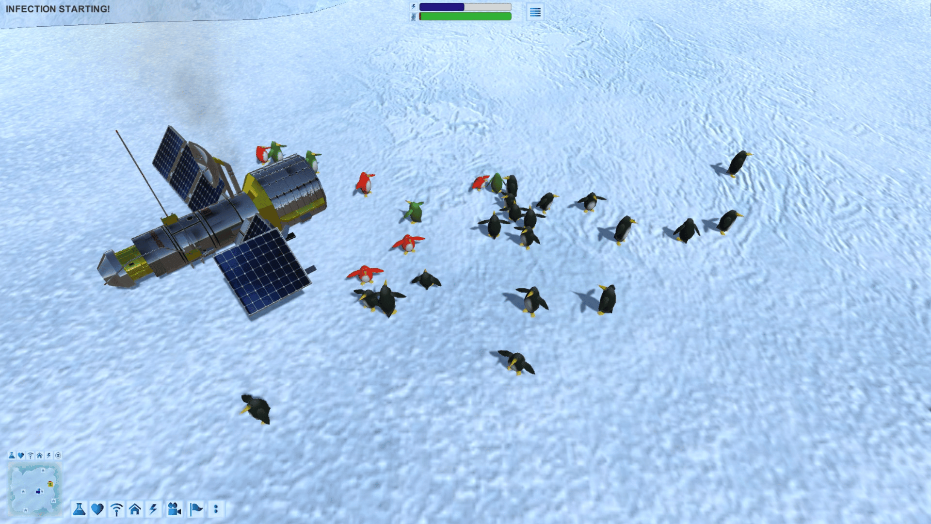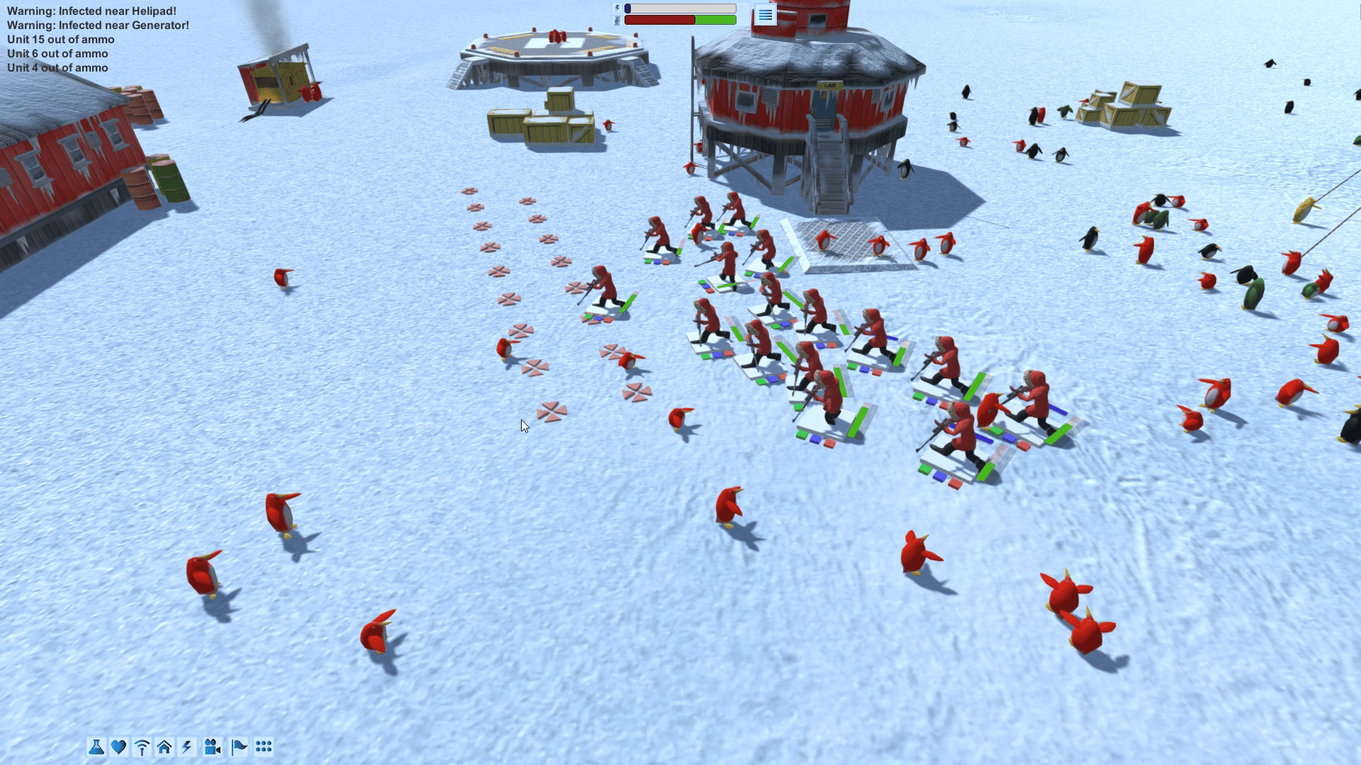 A real-time strategy (RTS) game which comes from our love of 50s Sci-fi films. Set in Antarctica you control a team of top scientists researching penguins. Disaster strikes when a satellite carrying an unknown space virus crashes near a penguin colony.
