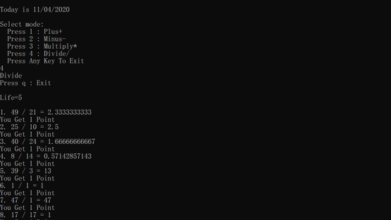 This game is a math quiz game to collect points by answering the questions correctly to get points that generate random numbers.