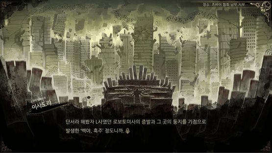 "May you find your book in this place." Roland, a low-grade Fixer from a location known only as the City, one day finds himself transported into the foyer of the titular Library, a mysterious location filled with books on any subject one could think of. He soon meets the Head Librarian Angela, and after a brief scuffle, she decides to spare him and recruits him to be her guide on the outside world. Angela has a strange way of going about it though, as she sends out calling cards called Invitations to ask people to come to the Library and gives them a choice in whether they accept or decline. If the guests accept, they must survive mortal combat against the Librarians that guard the building; if they win, they can take any book they want. If they lose, they will become a book themselves. All of this is in service to Angela's goal — gaining the one "perfect" book that can make her into a human.