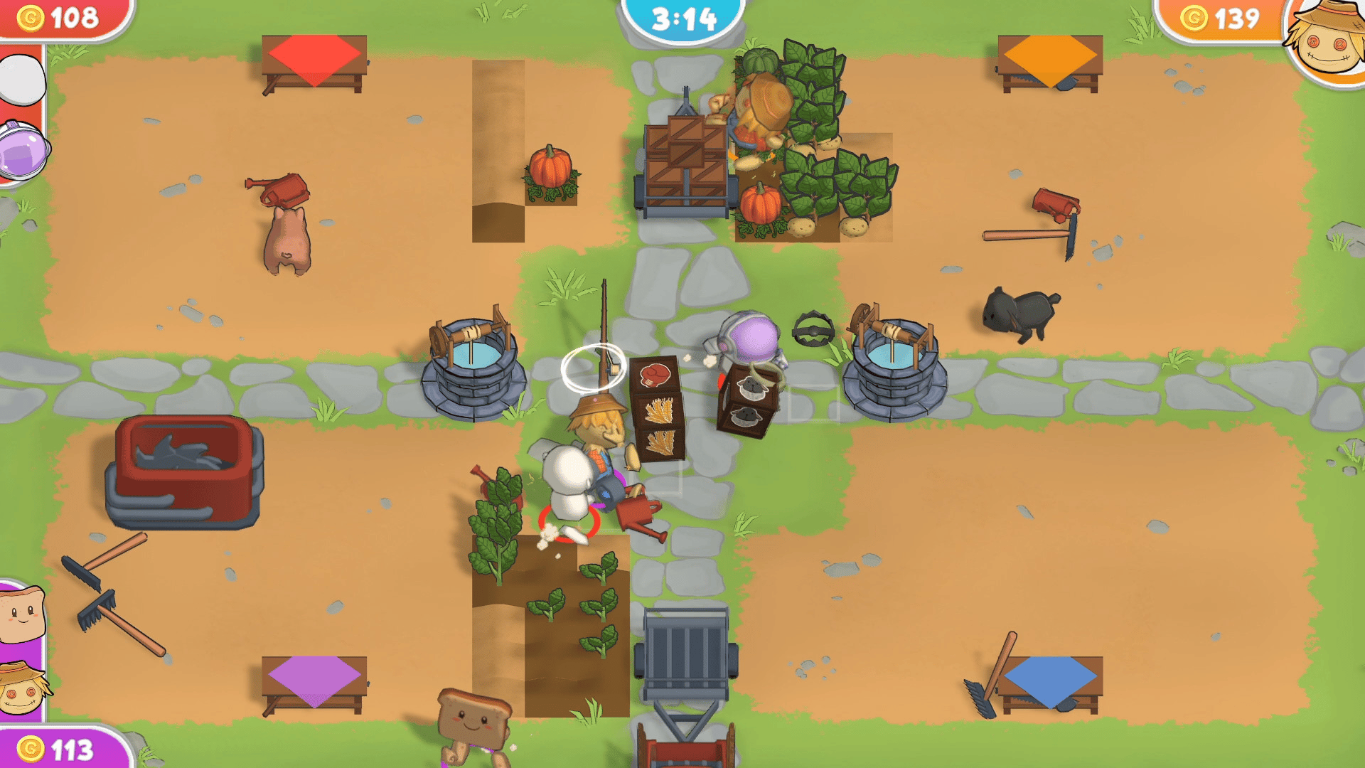 A fast-paced couch competitive farming game for up to 8 players. This farming life isn't as calm and peaceful as you'd expect: to become the best farmer you will need unusual methods to prevent your enemies from succeding.