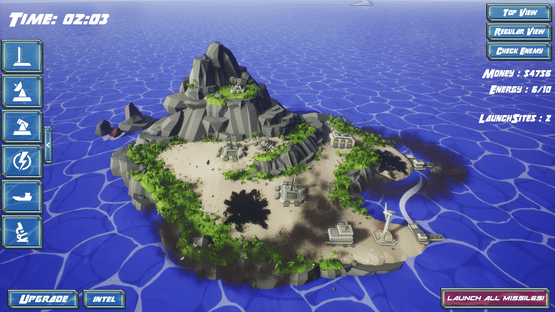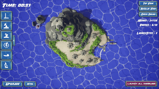 Launched! is a small scale RTS about building and launching an arsenal of missiles at the other island in the distance.