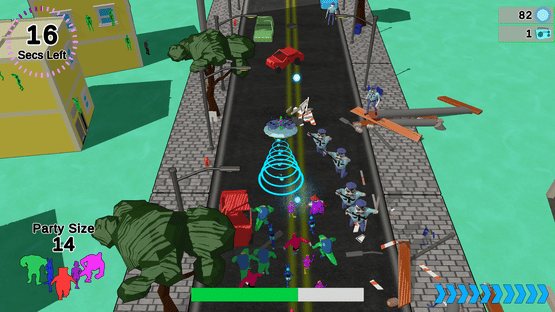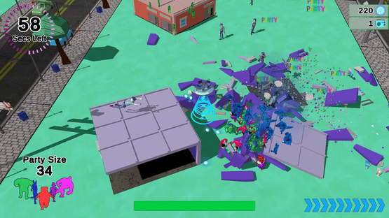 Rampage through a boring city turning boring people into party animals to throw the biggest party for your party god!