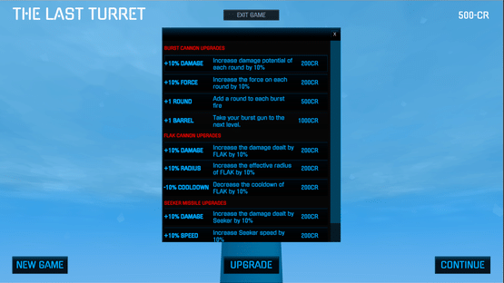 After a millennia in peace, you have become an ancient relic from the long ago ages of war. You've weathered the centuries on your perch in constant vigil and when invaders appear in the northern sky, you are the only line of defense. Upgrade your weapons and defend the Etherians!