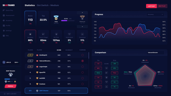The #1 Aim Trainer and one of the most popular free pc games is now available on Steam. The best aim practice solution for FPS and TPS games, with top analytics helping you monitor your improvement for the most vital skills of aiming. Level up your aim for free.