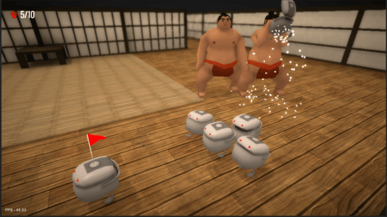 Made in 30 hours for #LetsGoGameJam, theme: Japan http://jams.gamejolt.io/letsgojam Synopsis: You are a Japanese Automatic Rice Cooker that has gained self-awareness due to the advanced artificial intelligence you possess. Rescue your fellow rice cookers and escape the Sumo Wrestler Training Grounds in this 3D stealth/action/puzzle game.