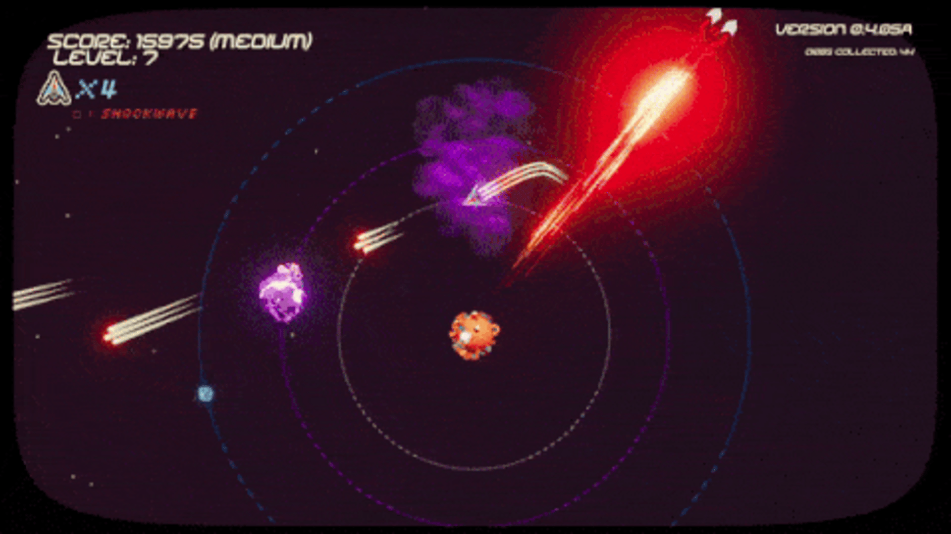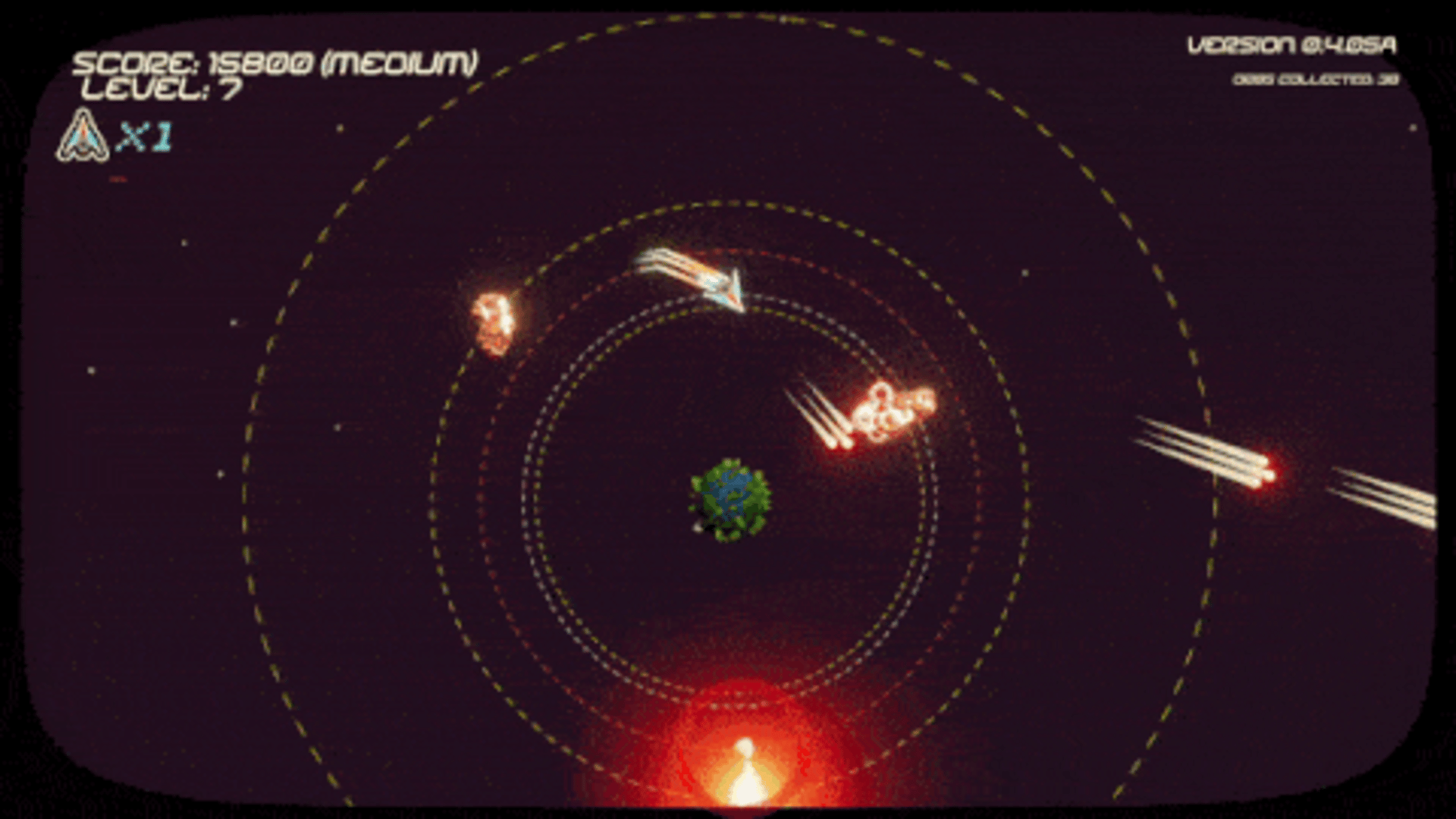 Defend your planet from incoming space debris. Blast asteroids, avoid collisions, use power-ups - and get a high score! This game plays like a twin-stick-shooter with a twist. All movement is "orbital." Your ship moves in an orbit around your planet, as do the enemies. It's a pretty neat spin on the classic space-shooter genre.