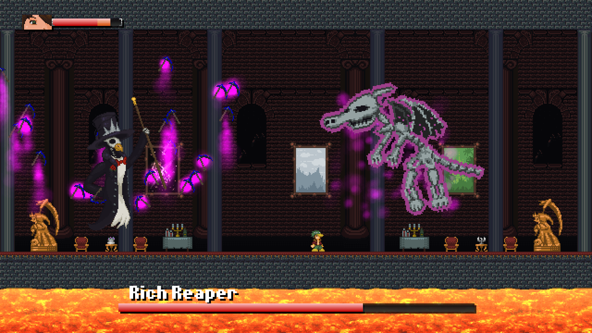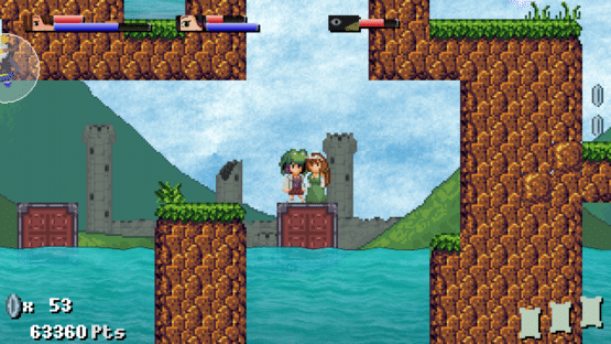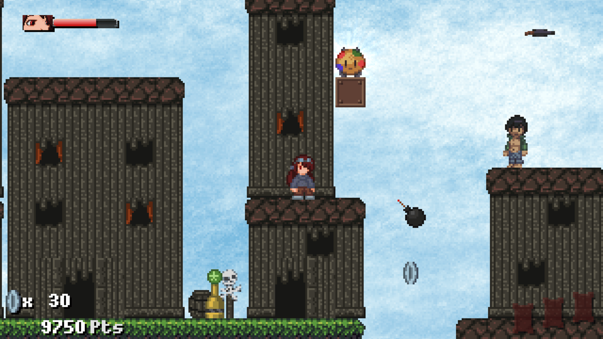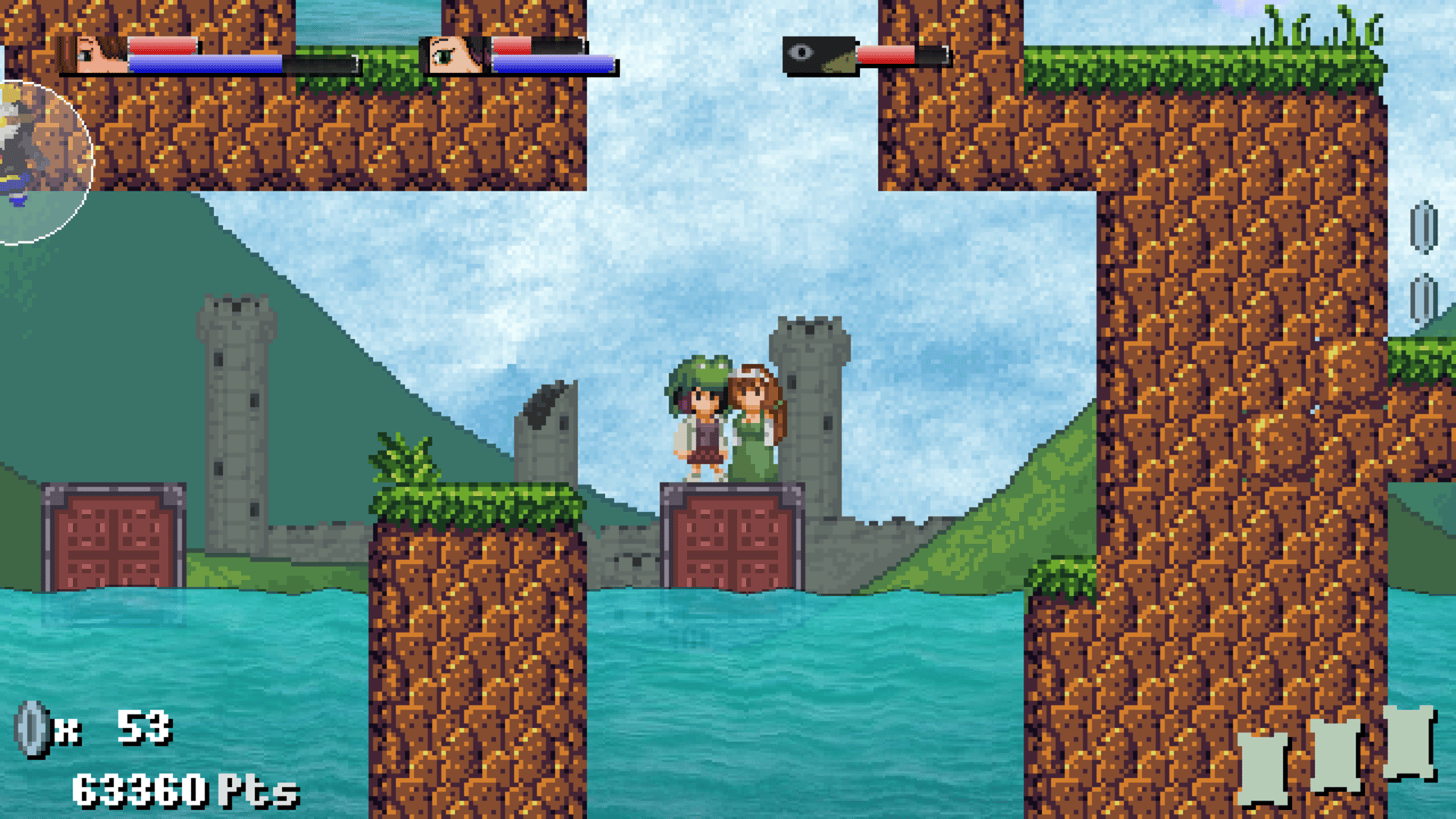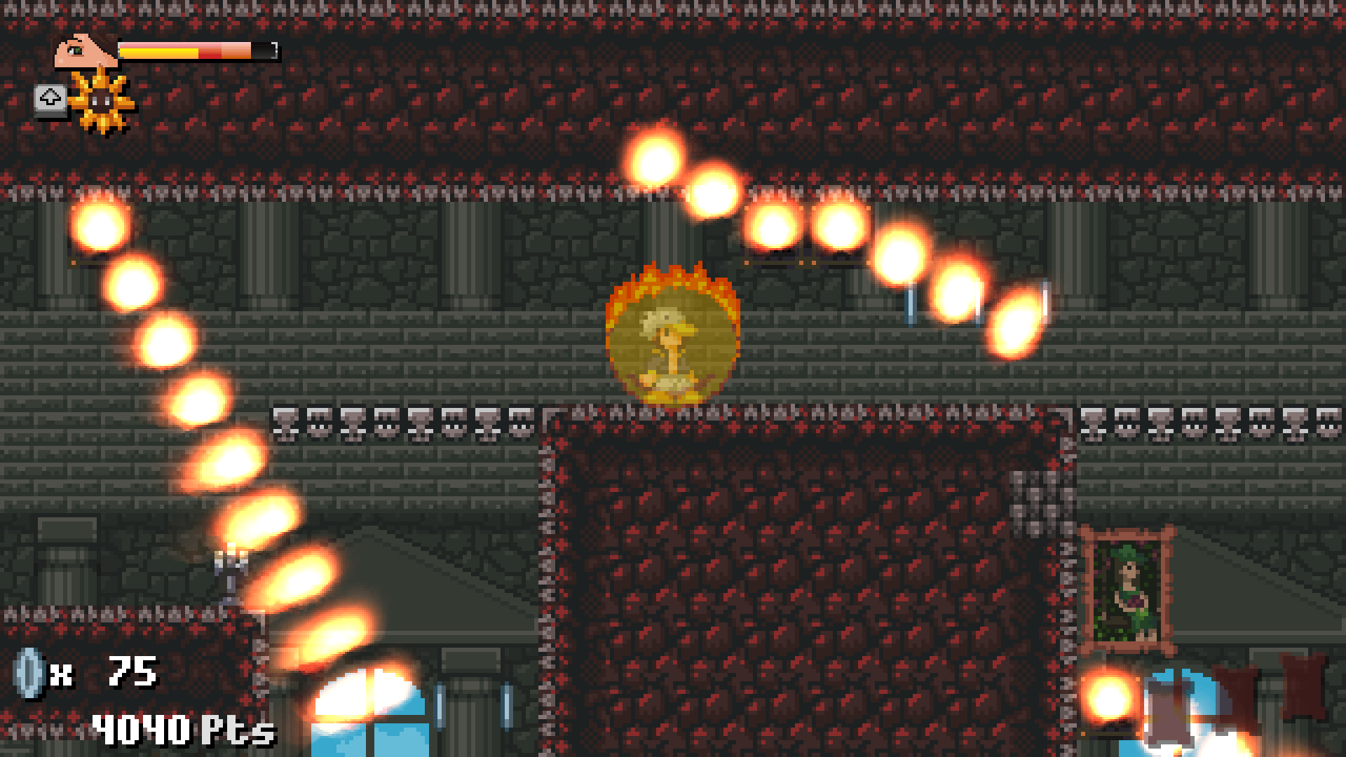 Daemon Detective Gaiden 2 is an action platformer where you fight enemies and jump your way through obstacles, trying to not only make your way to the finish line with your hide intact, but also retrieve as many of the hidden paintings in each world as humanly possible. Coins obtained in the levels can be spent on a variety of powerups to help even the odds, and every character has an unique ability that alters their gameplay style drastically. As you defeat the bosses of each world, you gradually piece together not only the final boss' lair, but also the dark history behind its creation...