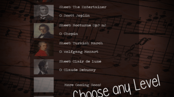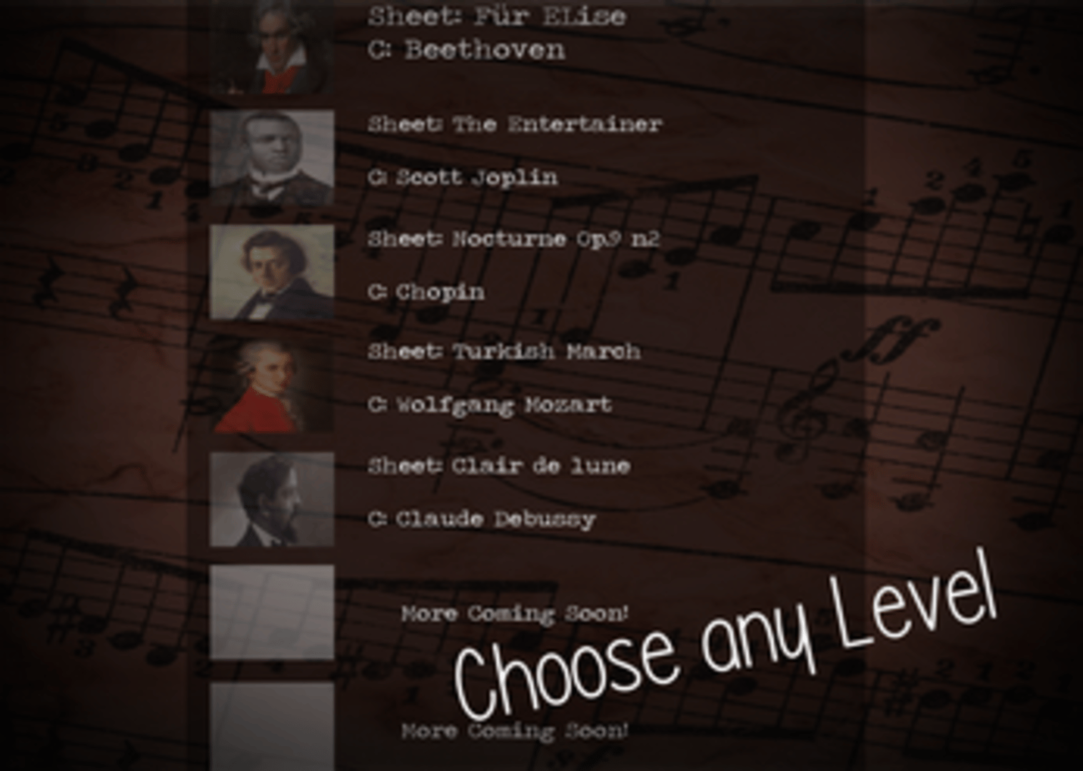 You can choose any level to play! The levels are basically a speed run that you have to finish till the end of these levels to get the piano sheets before the time runs out, that time depends on the piano sheet's length.