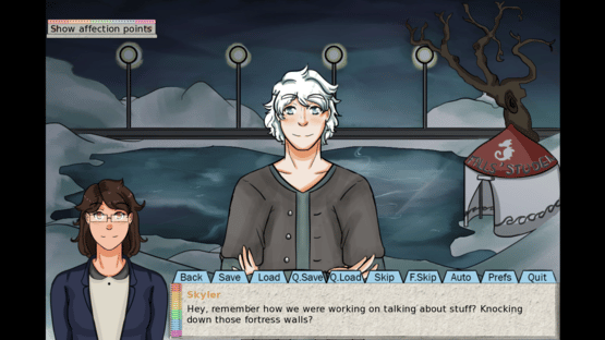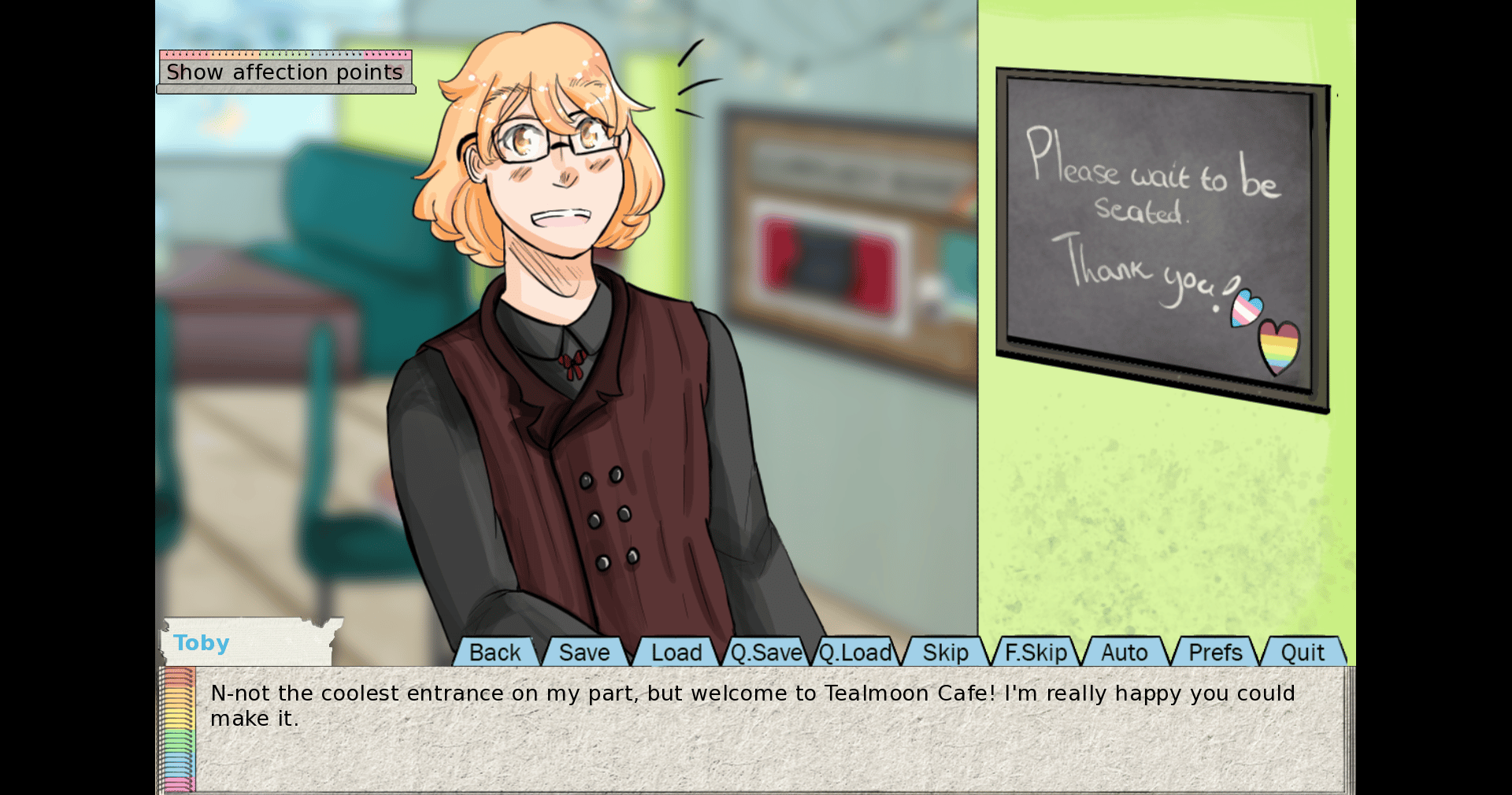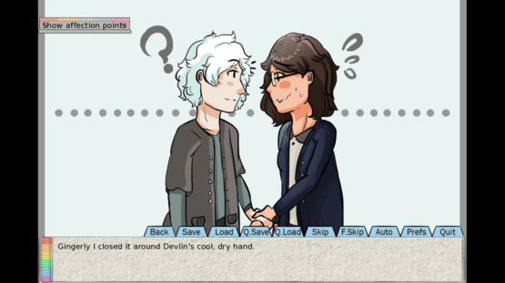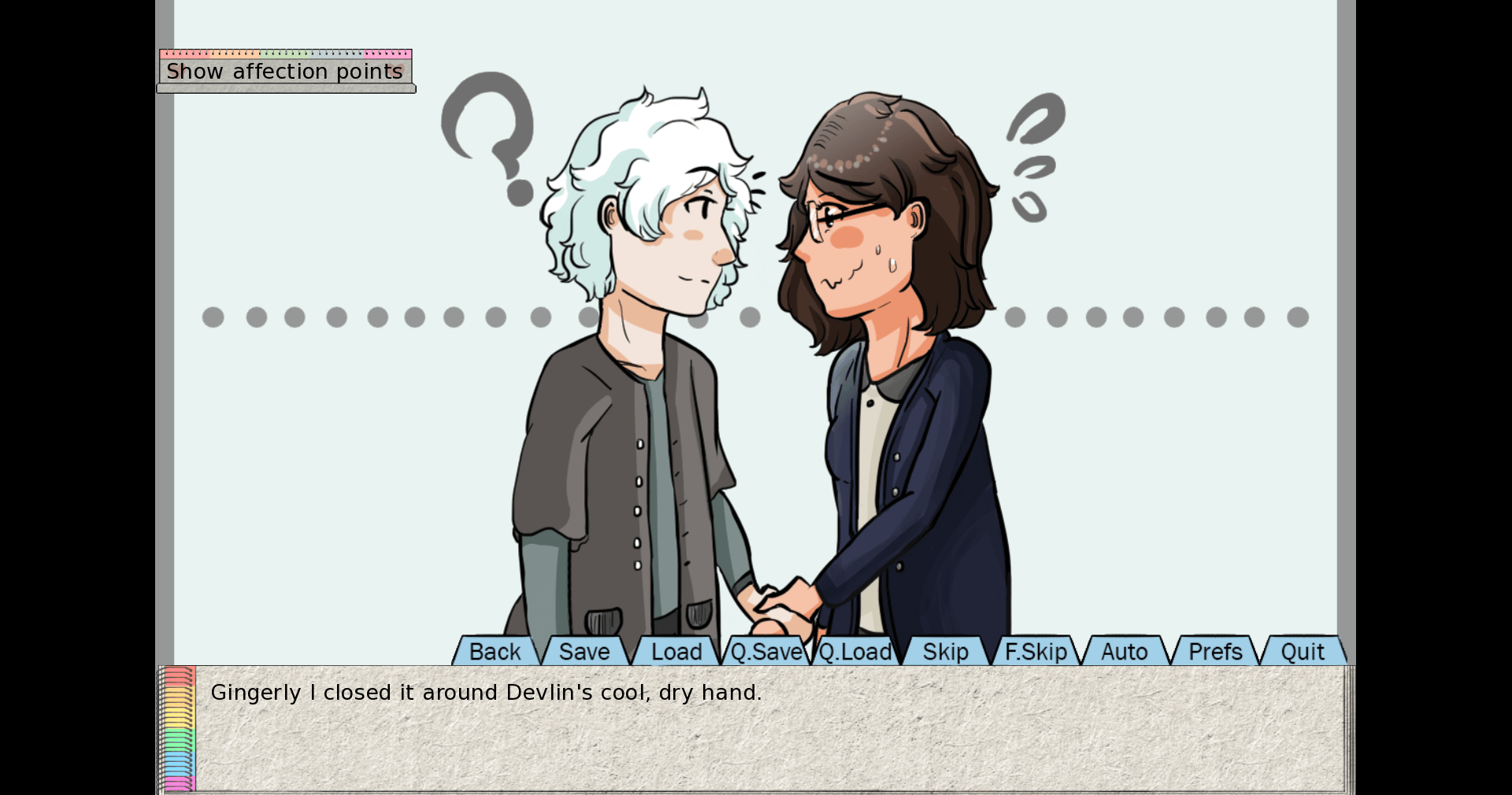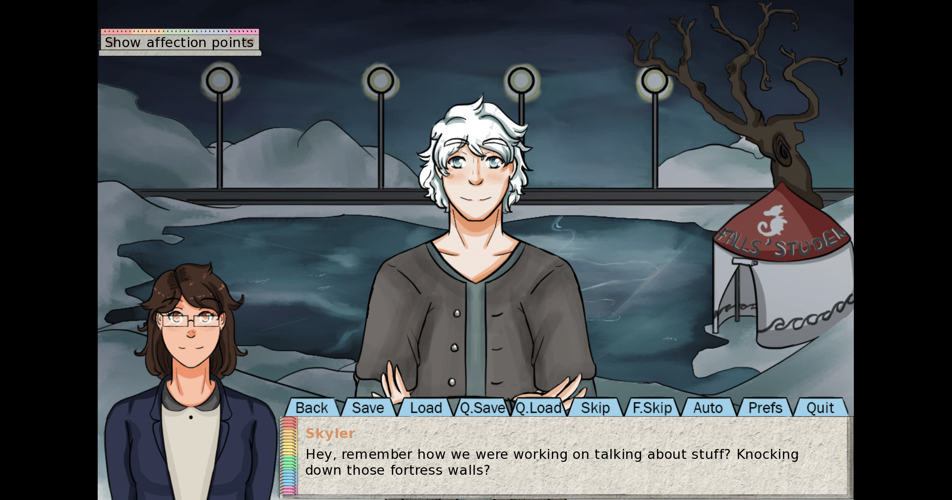 Love Hues! is a university-based visual novel packed with both character and world secrets. You'll be playing as Skyler (changeable name and pronouns) and navigate your first few months at Falls West University, where you'll meet 5 romanceable - or befriendable! - characters who hide certain truths about themselves and the world around them.