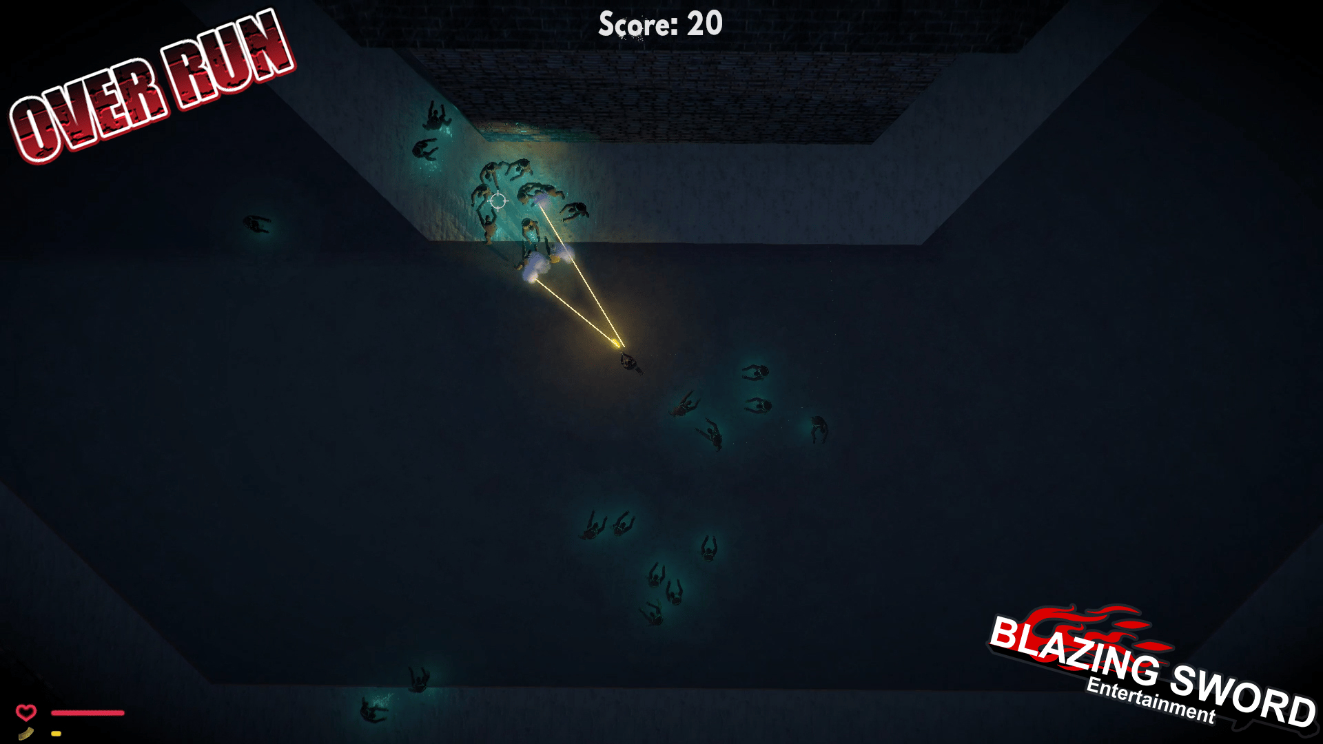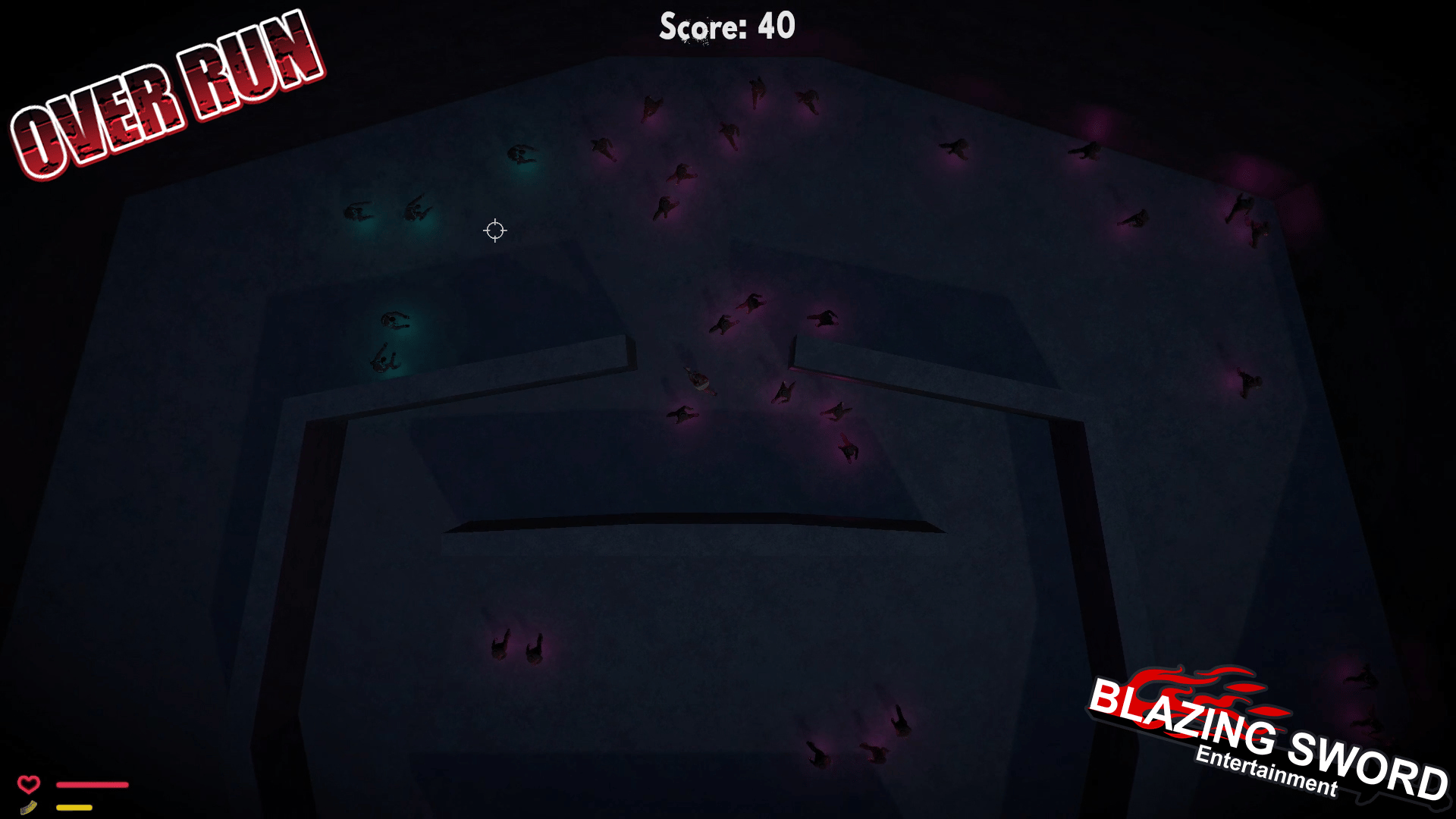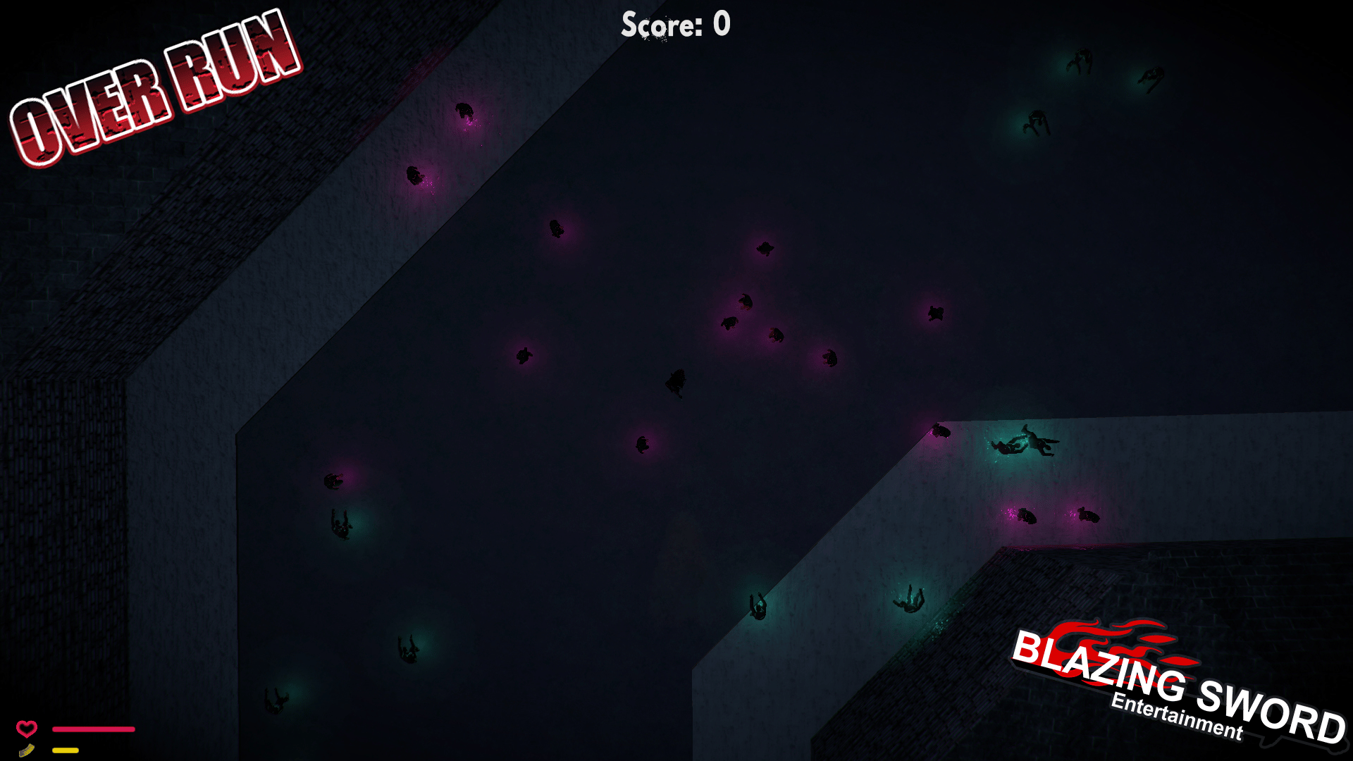 OverRun is a game about saving as many people as you can from a zombie outbreak. These Zombies traverse faster the longer it's been since they turned somebody, and it takes a mere touch for the transformation to begin. Luckily our four playable heroes seem to be immune to the curse!