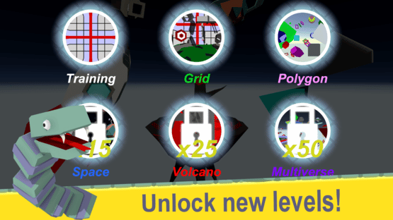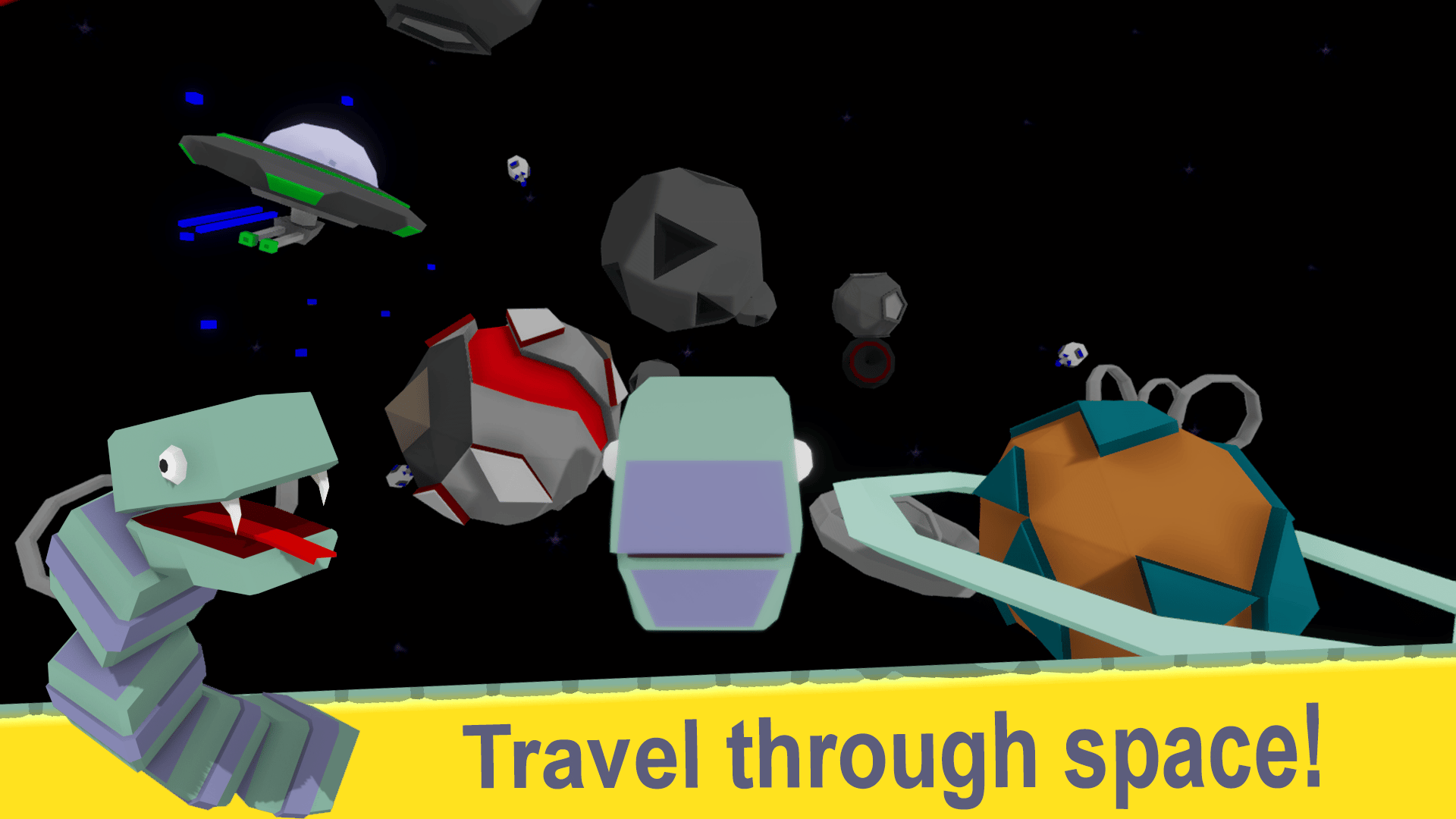 Super Snake 3D is a new take on the classic Snake. Eat, increase and get faster! Travel through different levels while eating fruits and collecting coins to unlock new levels and beat your highscore. Avoid all the dangers in space, volcanos, a polygon world and even a multiverse while getting bigger and faster!