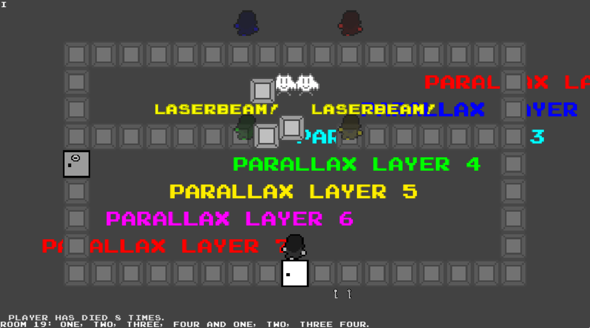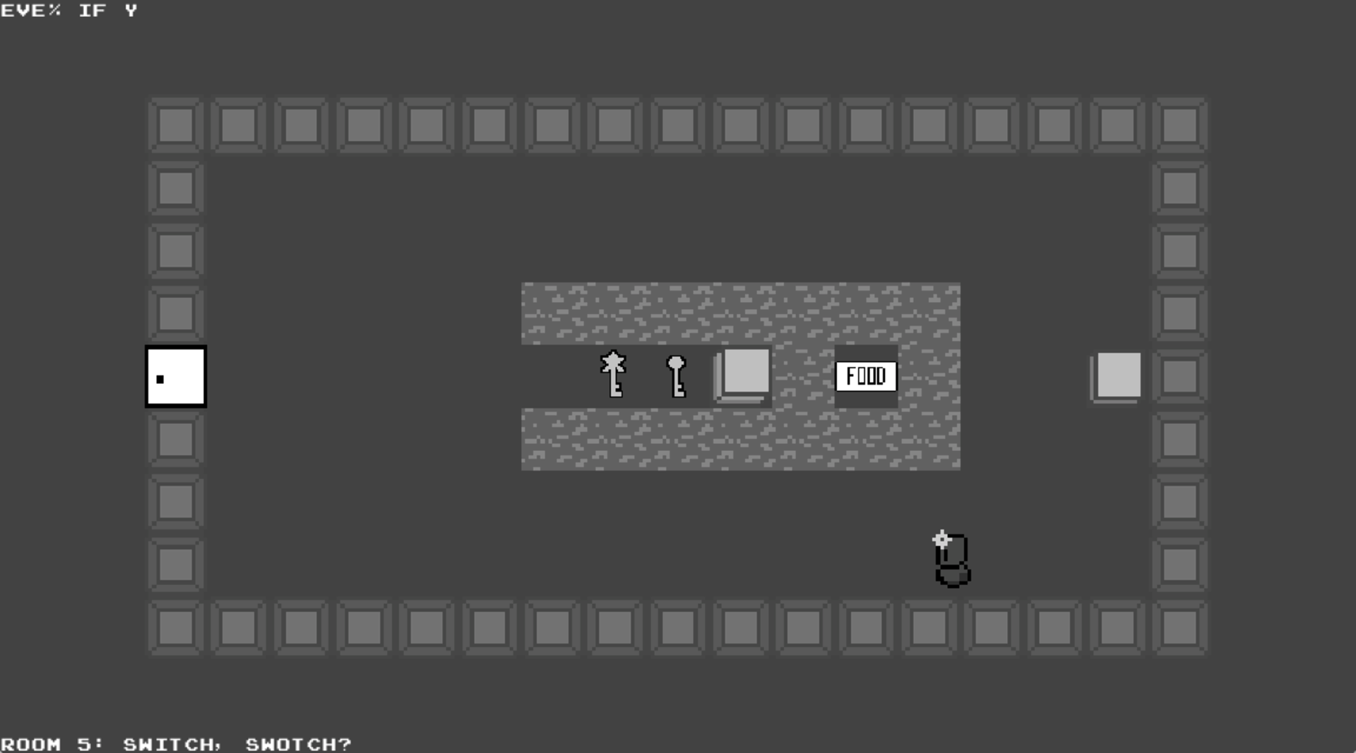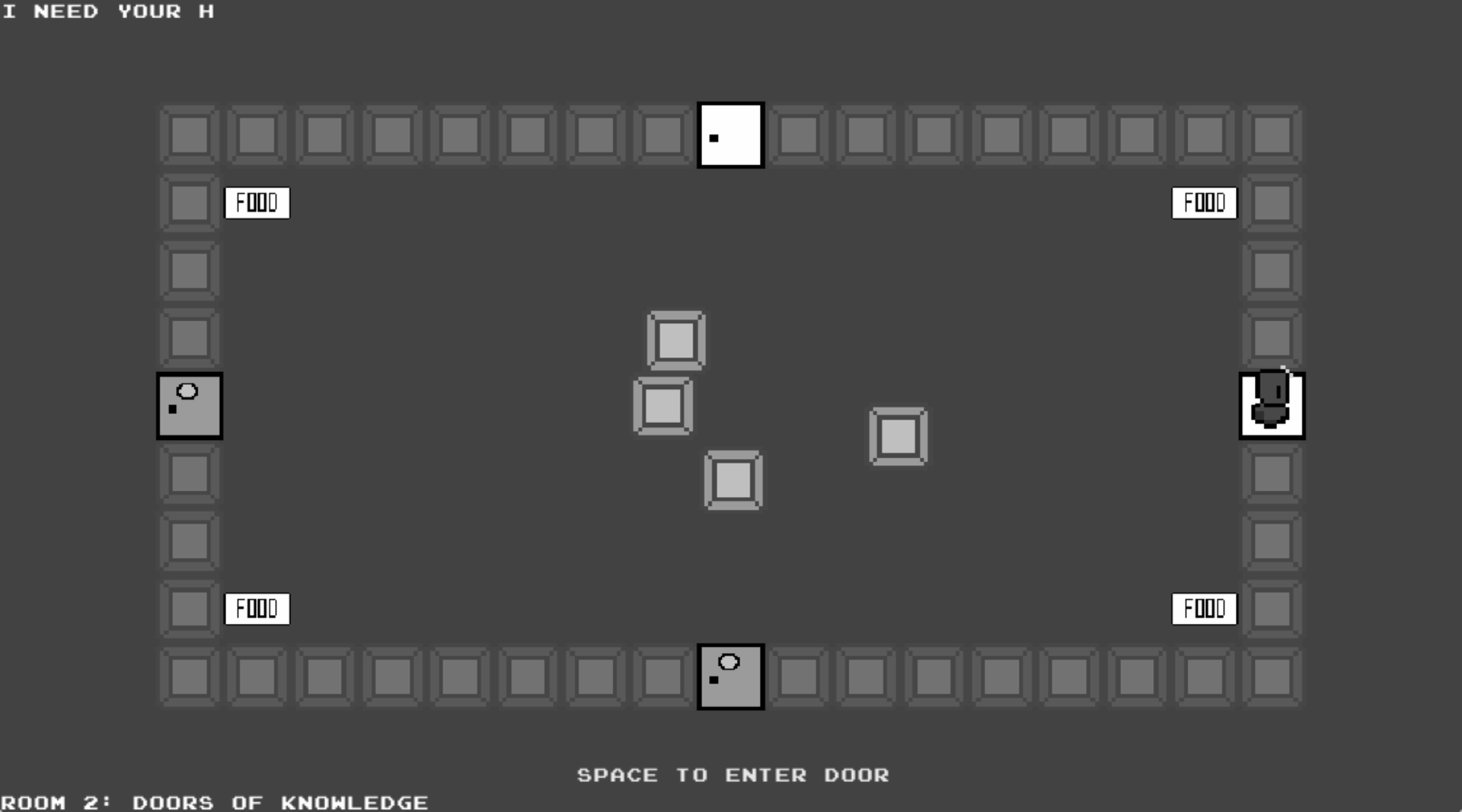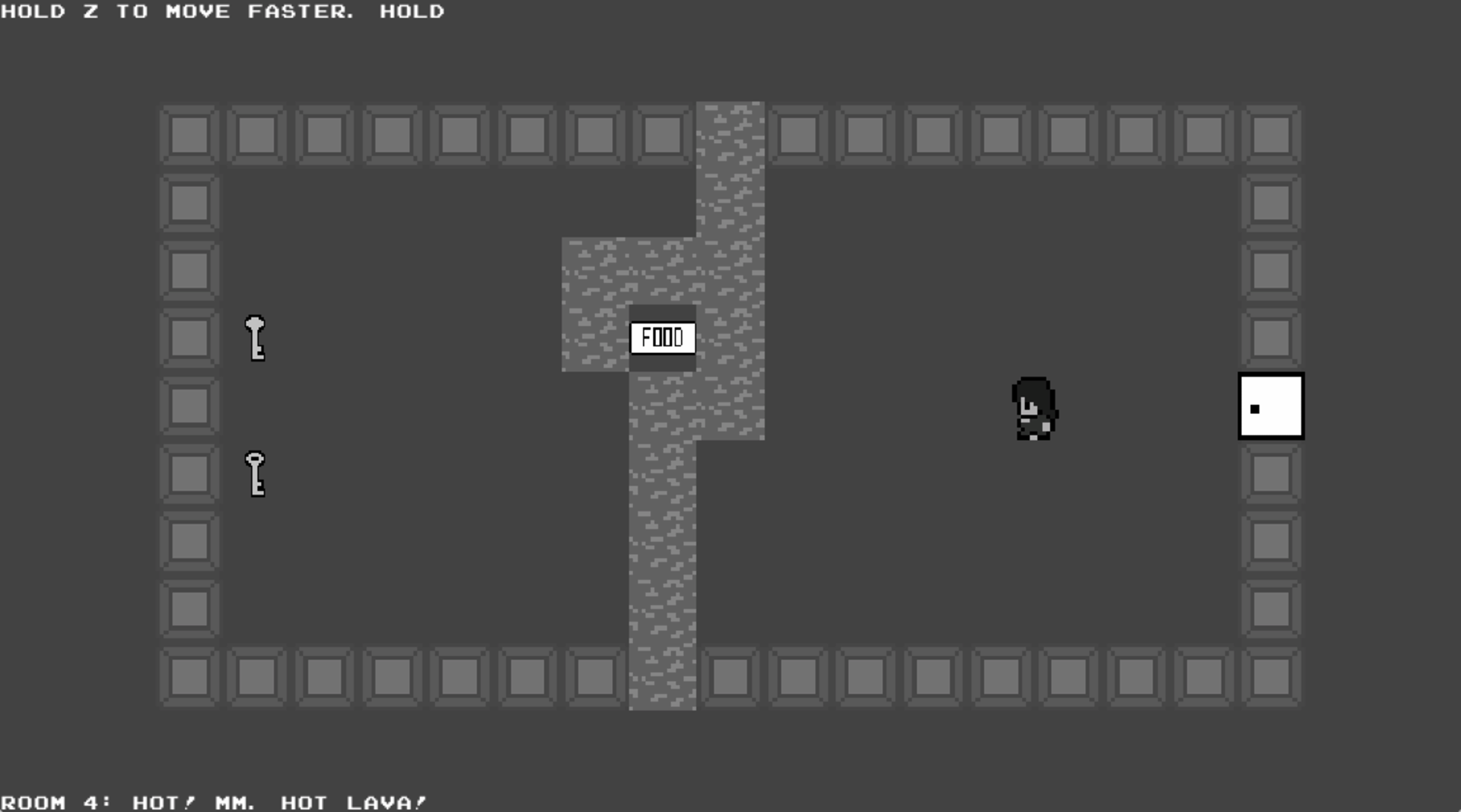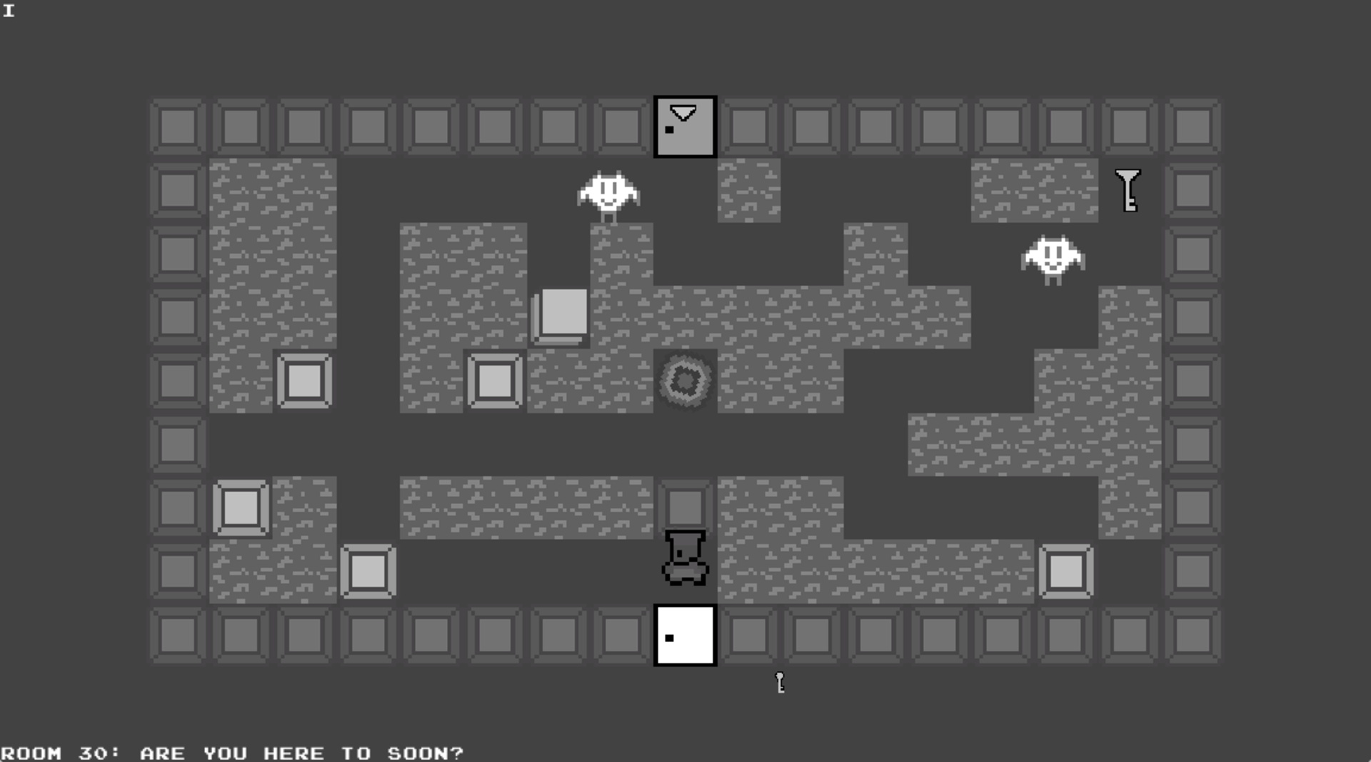 Help PLAYER save PLAYER'S LOVE. Make your way through TWENTY-EIGHT dangerous rooms and THREE not-so-dangerous rooms to save PLAYER'S LOVE. Three difficulty modes are available for those who just want to EXPERIENCE the game, those who want to PLAY THE GAME as originally conceived and for those who ENJOY PRECISE GAMEPLAY and OCCASIONAL BOUTS OF ANGER. PLAYER cannot attack enemies directly, but must make THEIR WAY through the SCARY DUNGEON in which PLAYER'S LOVE is located. Collect KEYS to open DOORS. Watch out for LASER BEAMS, LAVA and THINGS THAT LOOK LIKE BATS. Can you help PLAYER save PLAYER'S LOVE? More importantly, WILL YOU?