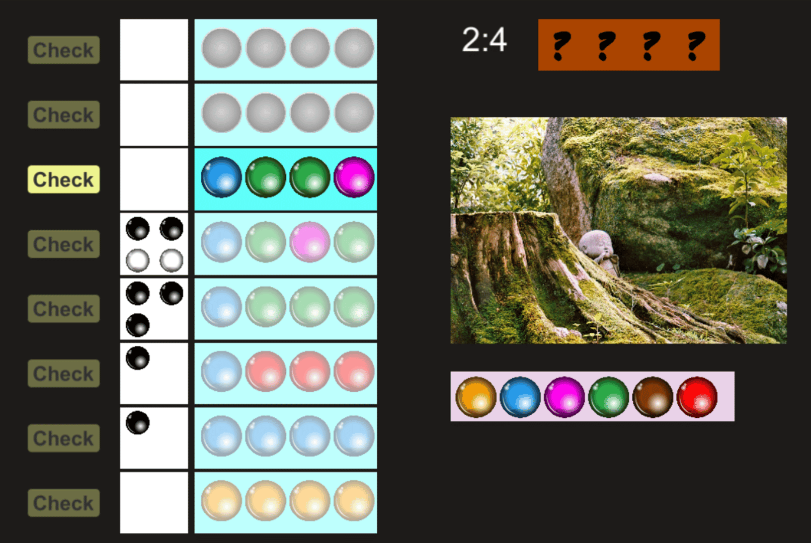 Brain jogging for everyone! Code breakers, try to guess the pattern of the pearls, in both order and color, within 8 turns!