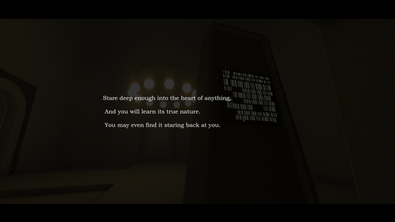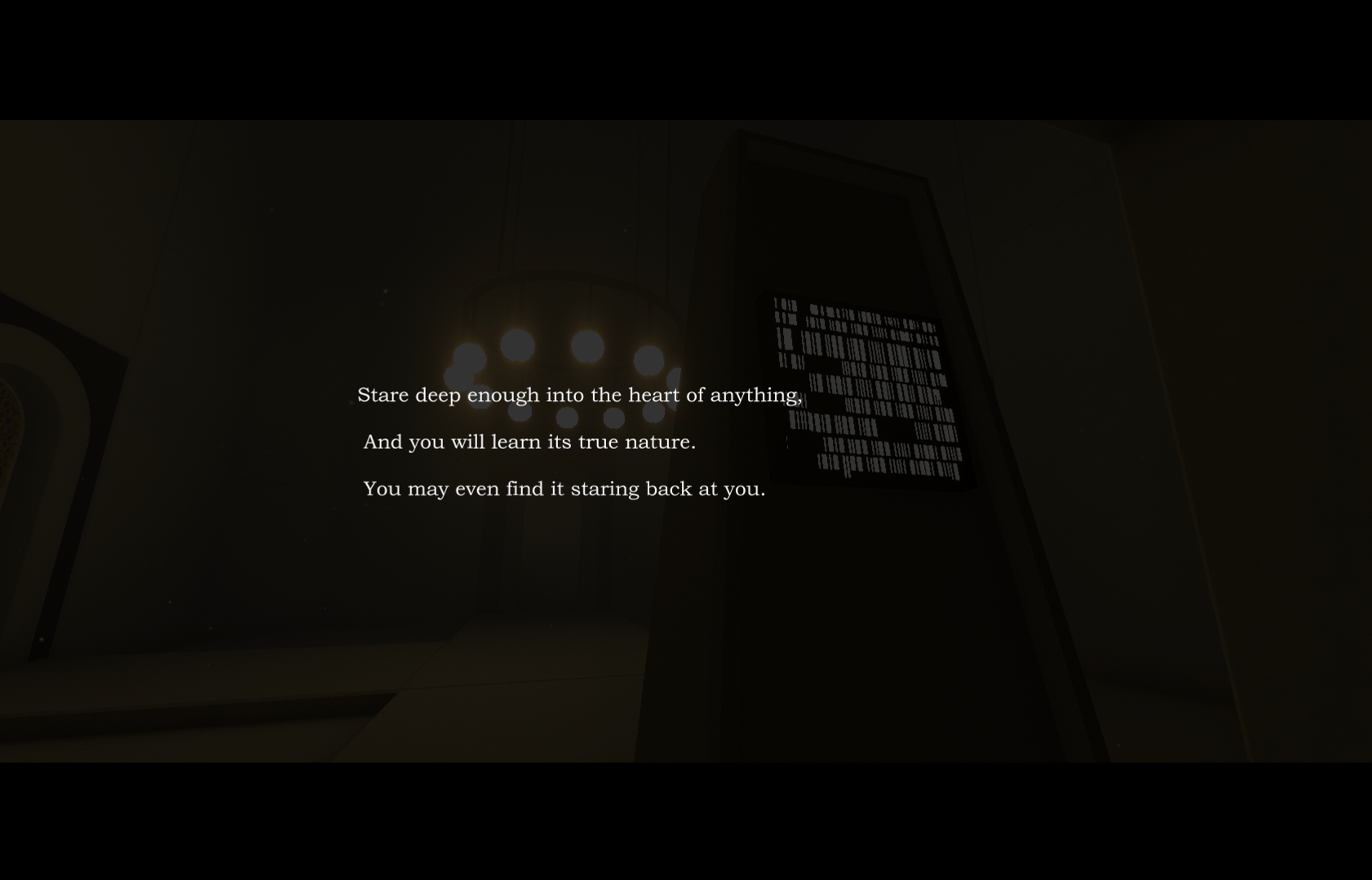 An atmospheric exploration game. The player is tasked with completing a ritual prescribed by an interspecies pact formed eons ago. Complete puzzles and delve deeper into a bewildering monument.