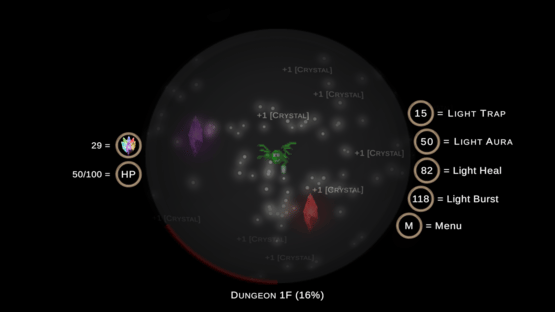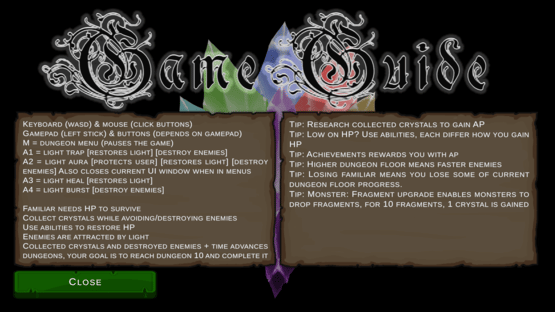 Familiar needs HP to survive. Collect crystals while avoiding/destroying enemies. Use abilities to restore HP and to destroy enemies. Enemies are attracted by familiar's light.