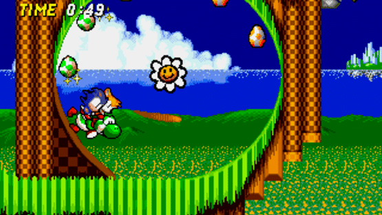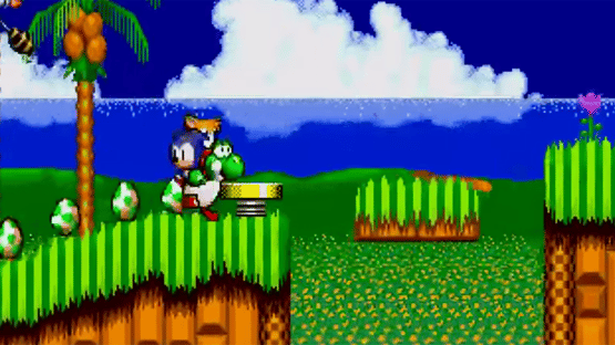 Yoshi in Sonic 2 is a ROMhack/mod of Sonic The Hedgehog 2. In this mod, the player controls Yoshi, with his signature moves from the Yoshi's Island series, like ground pounding, egg laying and throwing, enemy eating. Yoshi carries on his back a Baby Sonic and Tails, which will start to cry if Yoshi gets hurt, and the player loses a life if they are taken away.
