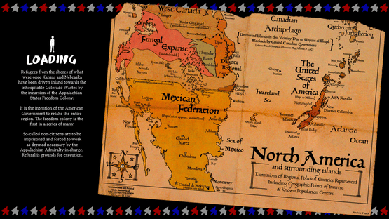 A post-apocalyptic role-playing game. Escape enslavement in the barren remnants of Colorado, centuries after the ice caps melt. America is a flooded, war-ravaged shell of its former self... and it's doing GREAT! Two centuries have passed since we flooded the Earth. For decades, humans struggled to survive, clustered on the new archipelagos, committing violence over what crude oil and arable land remained. The United States collapsed and was divided among the world's remaining nations. You are forced by threat of enslavement to flee your home on the coast of Kansas, driven into the devastated, lawless remnants of Colorado. Stranded with no home to return to...