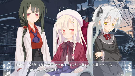 The town of Tsukigasaki has entered its third year of winter. Showing the seasons no mind, the snow only continues to fall. Gently, swaying in the air, as it descends downwards. That snow, which never had reached the ground, now does. The cityscape, once bleak, is now a blanket of glistening white. Just as no single snowflake is identical to another, each and every set of footprints on this snow-laden path are different from one another. No path can ever be retraced, for by the time you've looked to your back, those footprints will but all have melted away. As though a beckoning light, signalling that the road we know of as time is one that goes only forward. Yet, even from the base of Yggdrasil each branch is visible, so maybe too, it might be possible to pave new roads, new realities. Countless snow-laden paths lay stretched out before both human and faerie alike, and among those many happy endings they must choose one which they truly desire. Now, let us journey forth, in search of those white crystals that bear testament to eternity––––