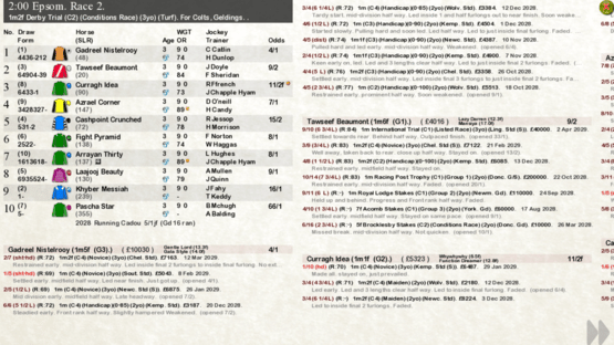 Starters Orders 7 is the latest in the acclaimed horse racing management series from Strategic Designs Ltd. New features include in-depth breeding stats and lineage, realistic dynamic commentary, newspaper style race and form cards, new racecourses, old-school style betting shop race modes and more.