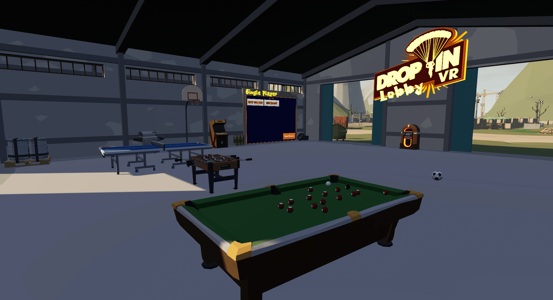 Drop In - VR F2P is a Free to play Low poly social game space. In Early Access players will be able to hang out in a lobby, play mini games, Squad up for Apoc, Zombies or Sandbox. Missions are being actively developed. DLC will be added after the game comes out of early access.