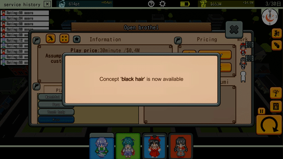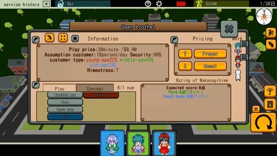 Prostitution is the theme of this management SLG. Hire and train your favorite girls from among more than 40 girls, and learn to play with them. Place them in your store in the best combination to maximize your sales.