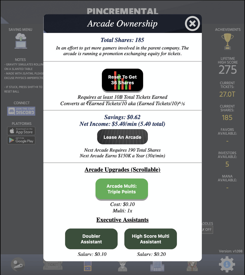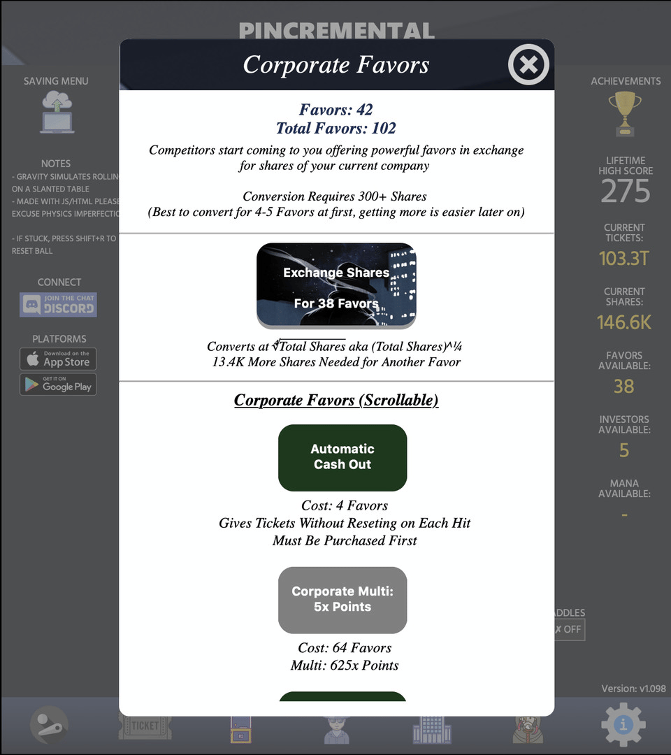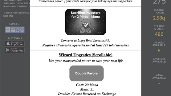 Become the Pinball Wizard you were destined to be! Master the pinball machine, cash out for powerful upgrades and automation, and climb the corporate ladder in this Pinball Incremental.