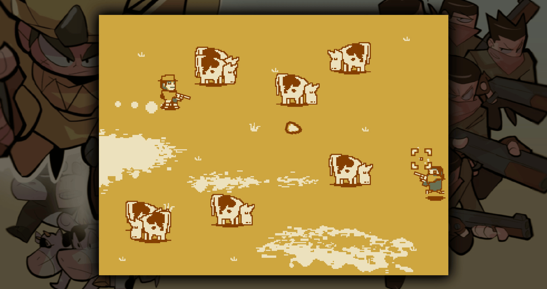 100 vacas is a bite-sized game about a cowboy defending one hundred heads of cattle from bandits and making every bullet count.