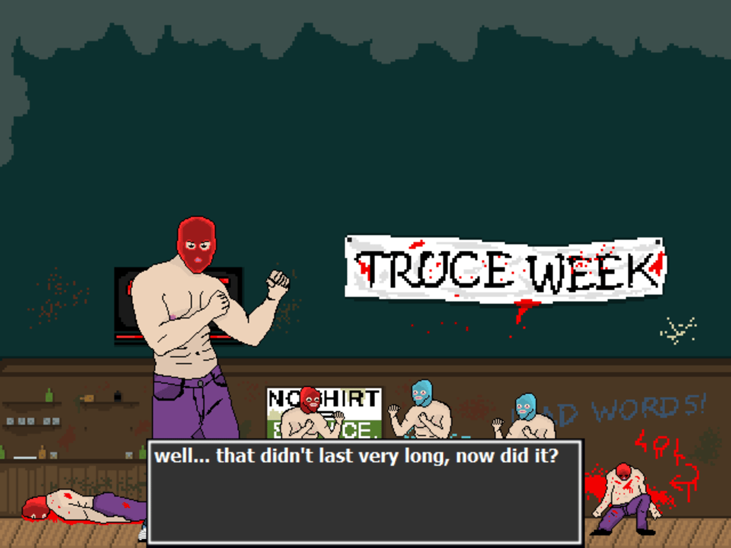 A comedic side-scrolling beat 'em up game about a man whose sheer, base desire for a good piss turns him into a large bloodthirsty wolf monster, also known as PISSWOLF. The game features colorful pixel art graphics, as well as several minigames alongside the main gameplay.