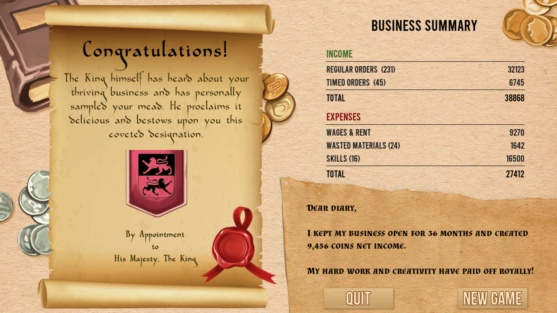 Mead Crafter is a casual match-three game set in medieval times that lets you build a thriving business as a mead maker. Click colorful icons to fill your customers’ orders for different types of mead flavored with various fruits and spices. Earn coins every round to cover monthly rent costs or buy various skill improvements that help you grow your business. Can you keep up with new orders and master all the skills needed to earn official recognition from the King?