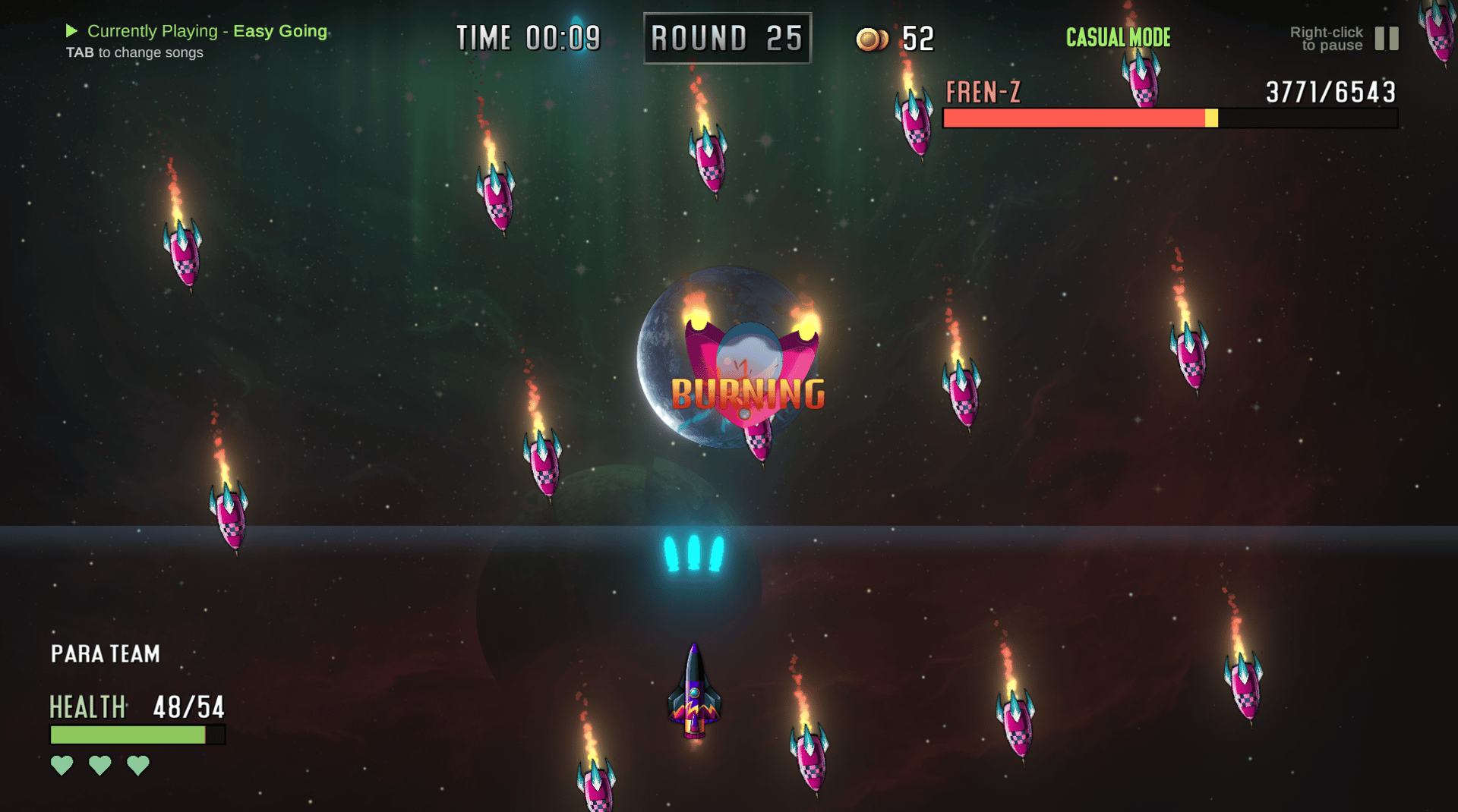 Ozone Guardian is a modern take on the classic arcade space shooter with colourful stark visuals and equally addicting gameplay. You defend the ozone layer against groups of evil spaceships, which increase in quantity and power each time, and you're thrown at a large menacing boss every 5 rounds. Your dodging and timing skills reward you with higher points at the end of the round, which you spend on creative Upgrades in the Space Shop to boost your spaceship's capabilities. Whether you enjoy burning foes with damage over time, launching shuriken shaped blasts, shooting 4 shots simultaneously in a cone, piercing through enemies or firing at hit-scan speeds, the Shop has your creativity covered. With thousands of combinations, your choices matter in your spaceship's growth and will affect your experience moving forward at harder rounds. Purchase power in small increments each round, or save your points to large amounts to see the Shop offer some higher-level supreme upgrades. ➜ Features - Wide variety of starting spaceships each with their own benefits and traits - Randomized enemy spaceships with unique attack styles each round - Creative bosses with stimulating skills that'll challenge your dodging precision - An upgrade system that allows you to build upon your spaceship (power, size, speed, flame shots, homing shots, spread shots, and more!) - Global leaderboard with statistics and records of gameplay sessions from other players - Adaptive Shop system - dynamically displays upgrades relevant to your income and availability - Large range of background soundtracks to harmonize with your experience - Three difficulty modes (casual, normal, hard) to suit your skill level and time available