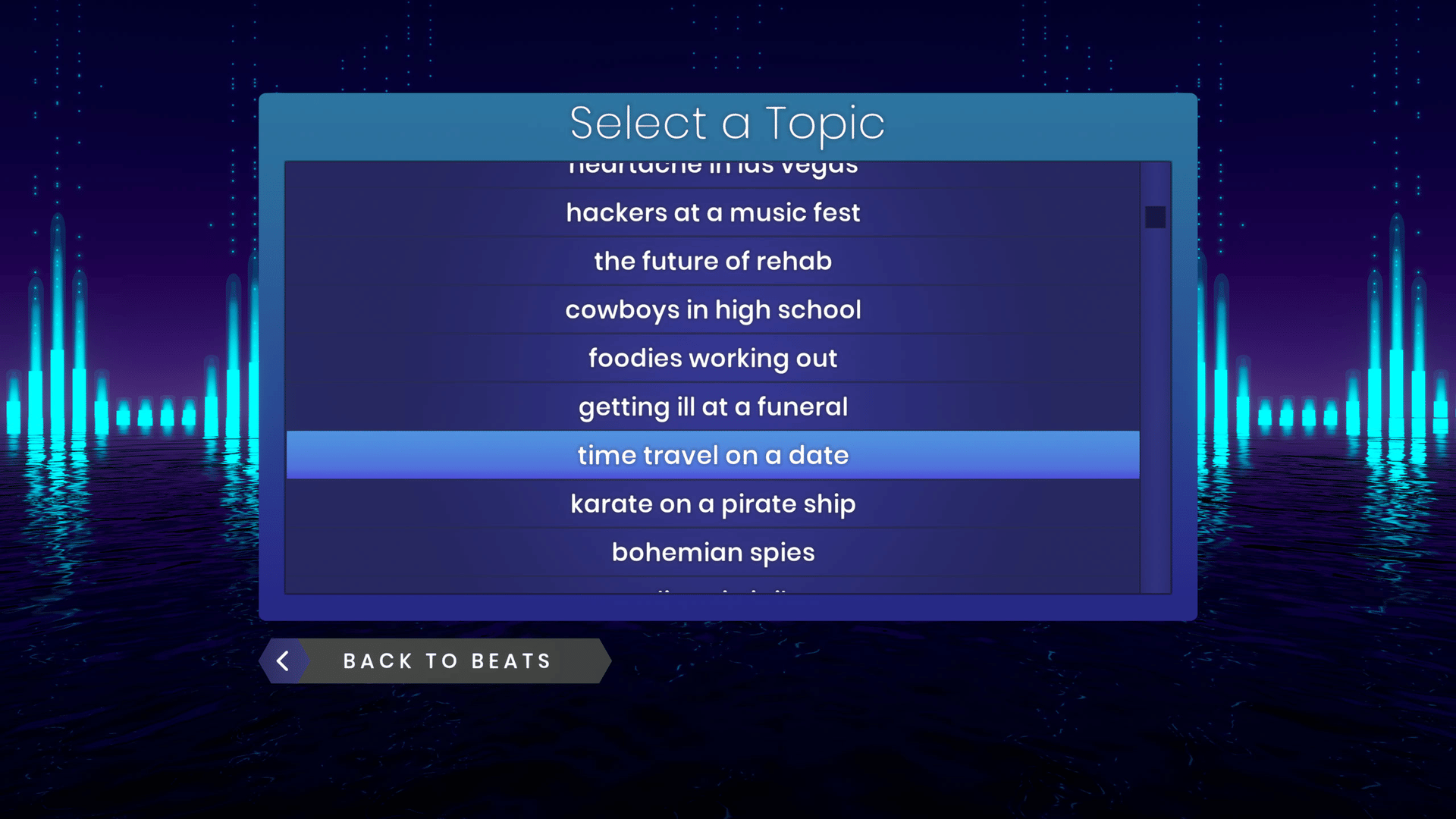 Rhyme Storm is a freestyle rapping rhythm game that gets you on the beat with visual guides, flashing words, and 3d visualizers that pulse to the music. It features 6 difficulties across 2 modes that go from easy enough for a total beginner to hard enough for even experienced rappers to feel challenged.